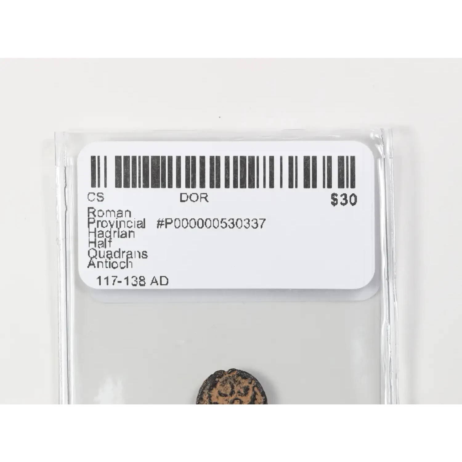 | Year | Roman Provincial Hadrian Half Quadrans Antioch |