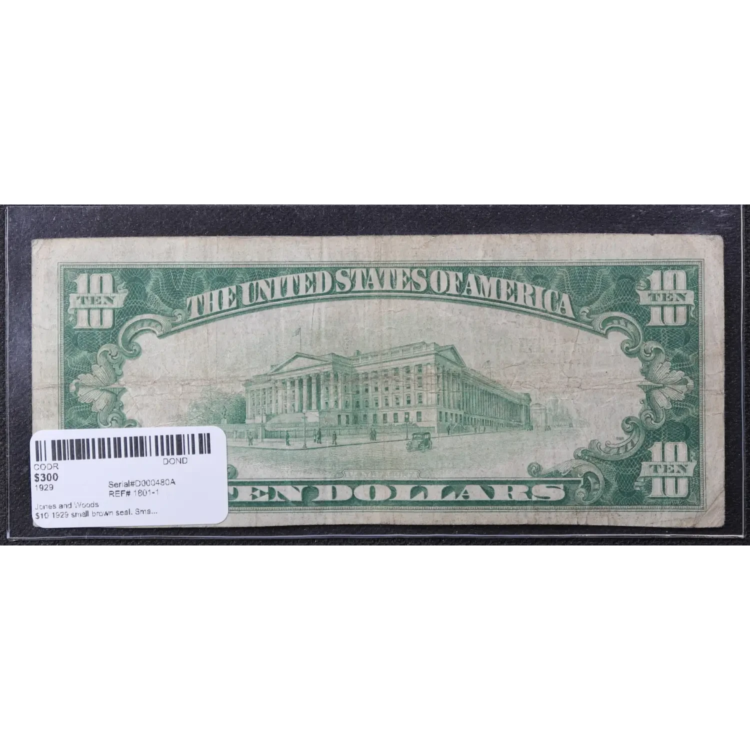 $10 1929 small brown seal. Small National Bank Notes 1801-1