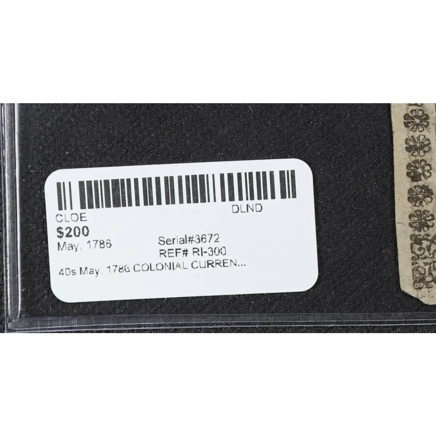 40s May, 1786 COLONIAL CURRENCY RI-300
