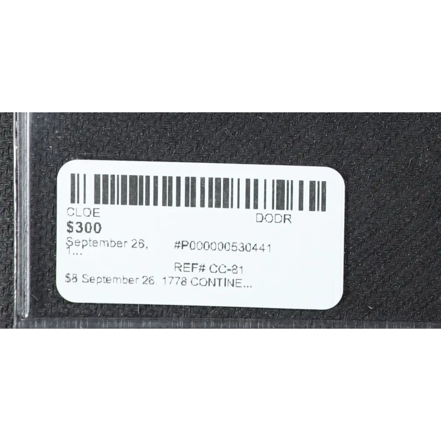 $8 September 26, 1778 CONTINENTAL CURRENCY CC-81