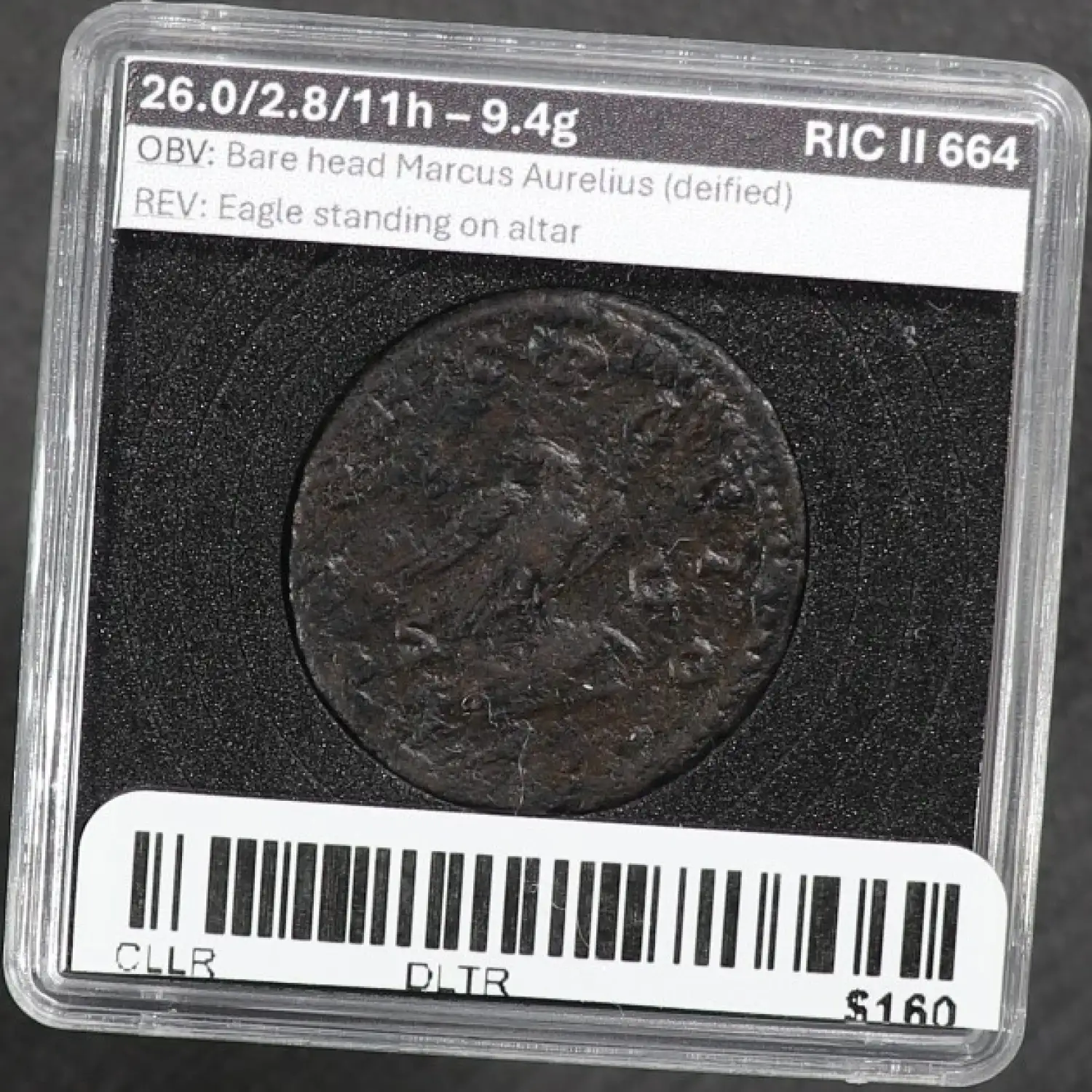 Divus Marcus Aurelius under Commodus AE As 180 AD Rome Eagle rev. NICECoin is in an unsealed "quadrum" case for display purposes, simply insert a thumbnail into the bottom left corner and pull apartour inventory sticker with the barcode is an easy peel sticker that leaves no mess behind