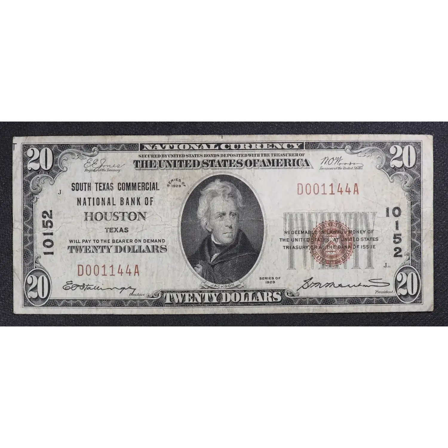 $20 1929 small brown seal. Small National Bank Notes 1802-1