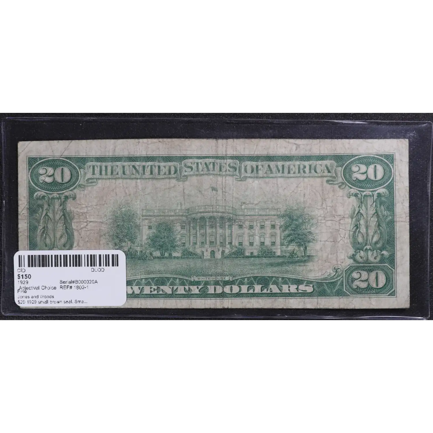 $20 1929 small brown seal. Small National Bank Notes 1802-1