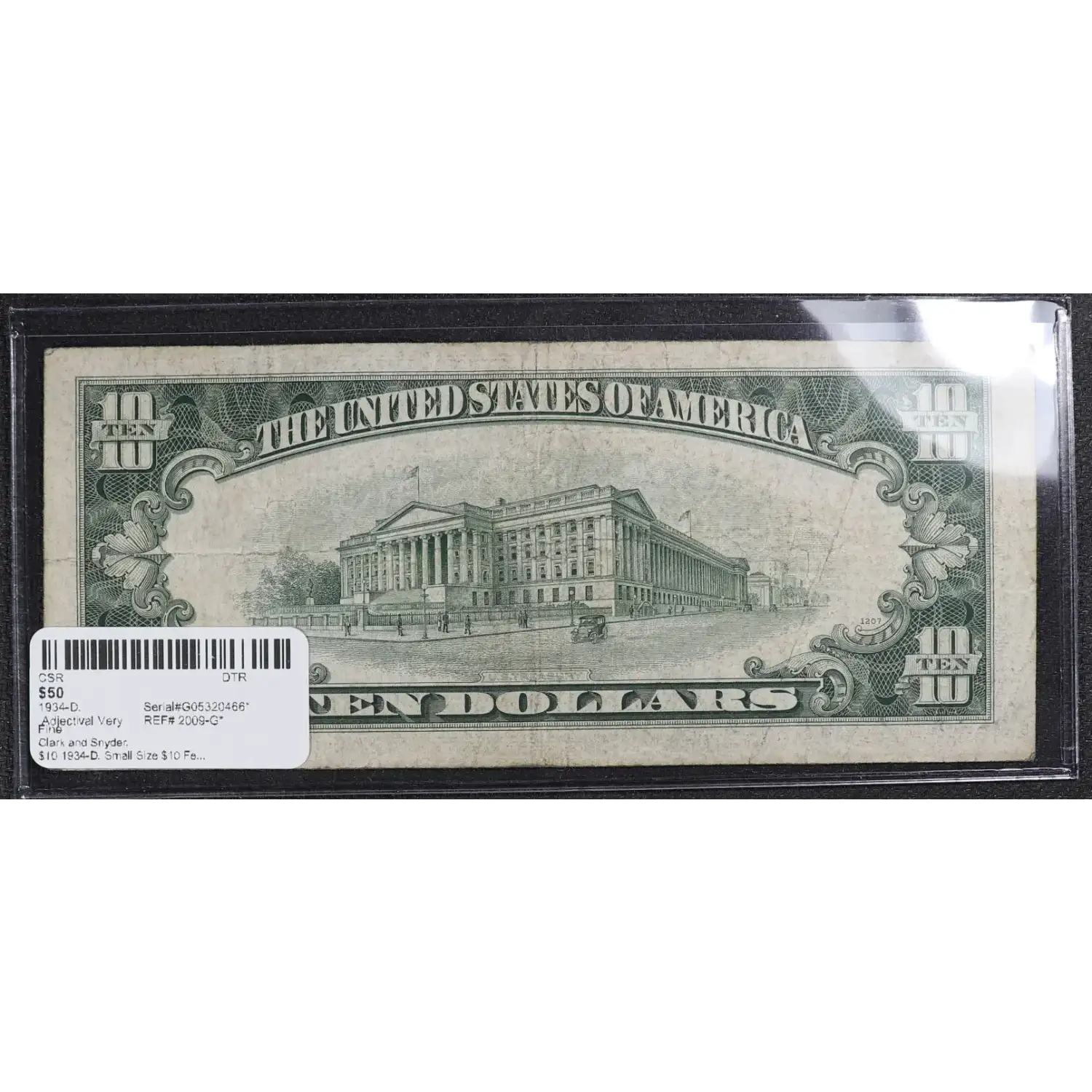 $10 1934-D. Small Size $10 Federal Reserve Notes 2009-G*