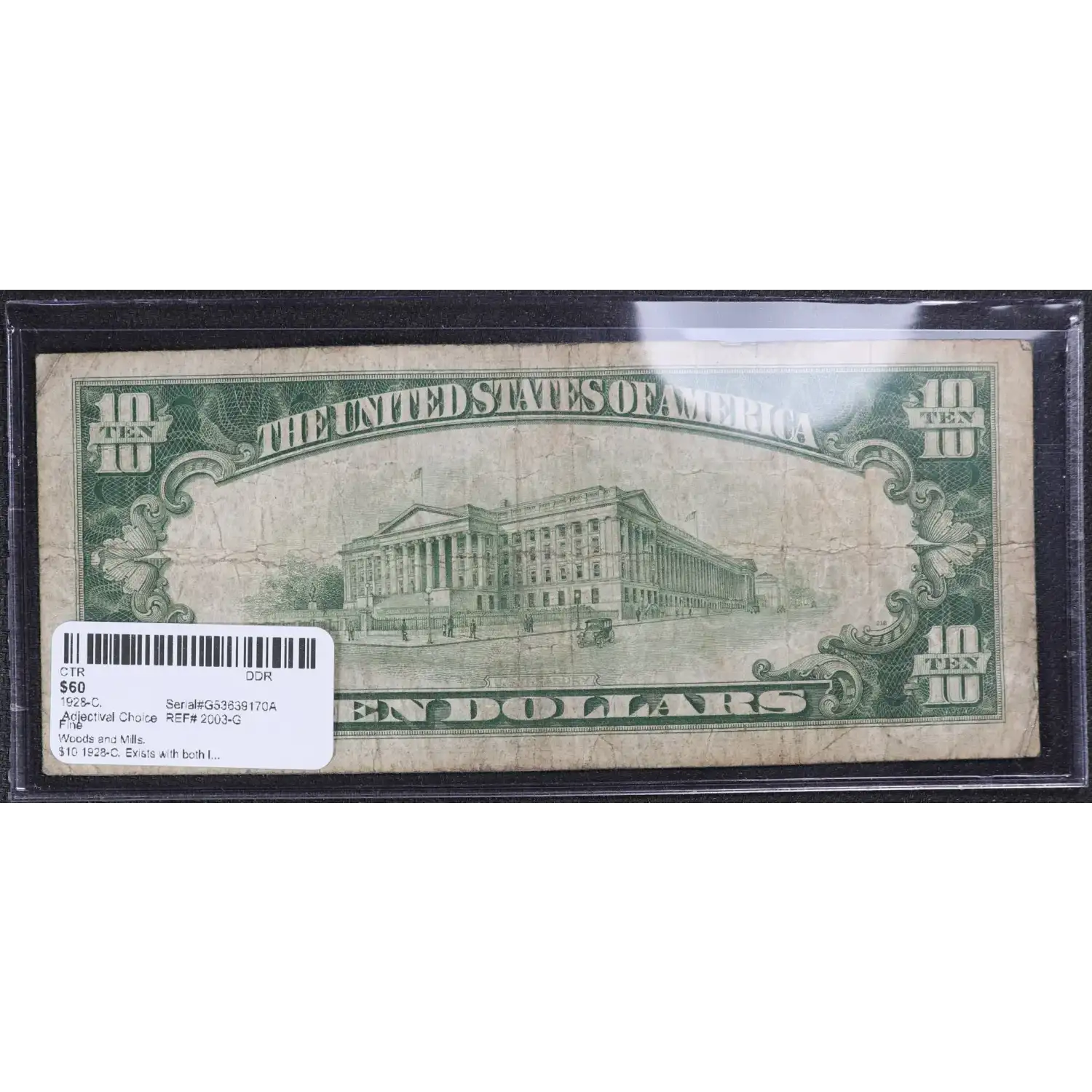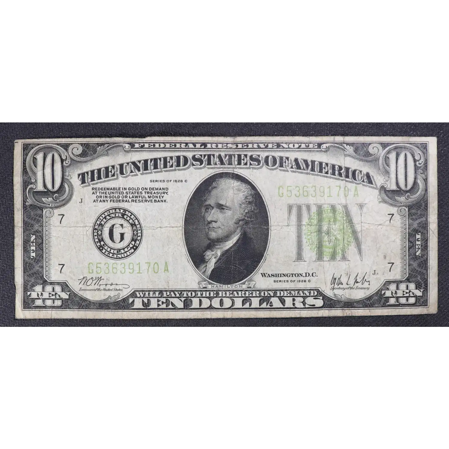 $10 1928-C. Exists with both light and dark Green seals Small Size $10 Federal Reserve Notes 2003-G