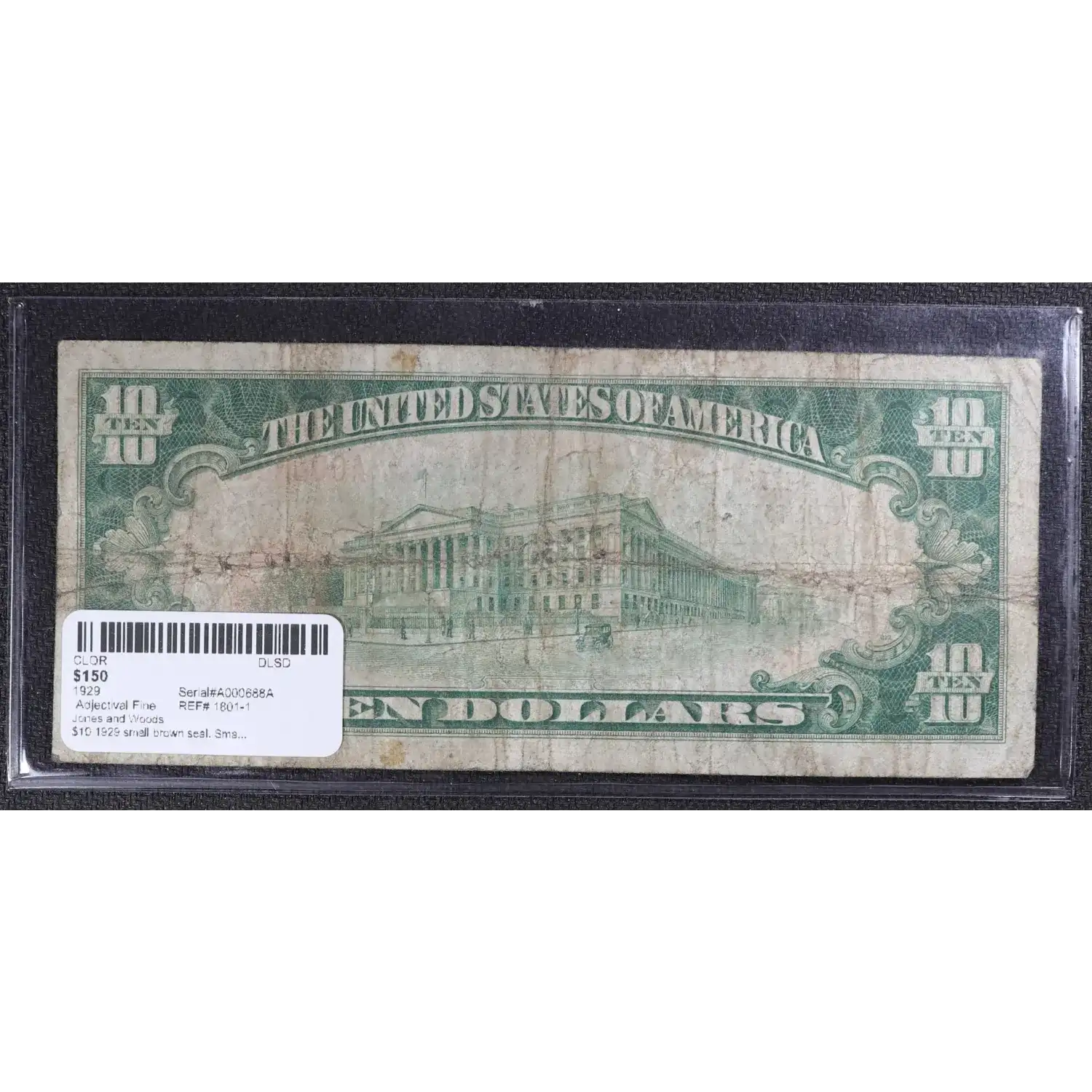 $10 1929 small brown seal. Small National Bank Notes 1801-1