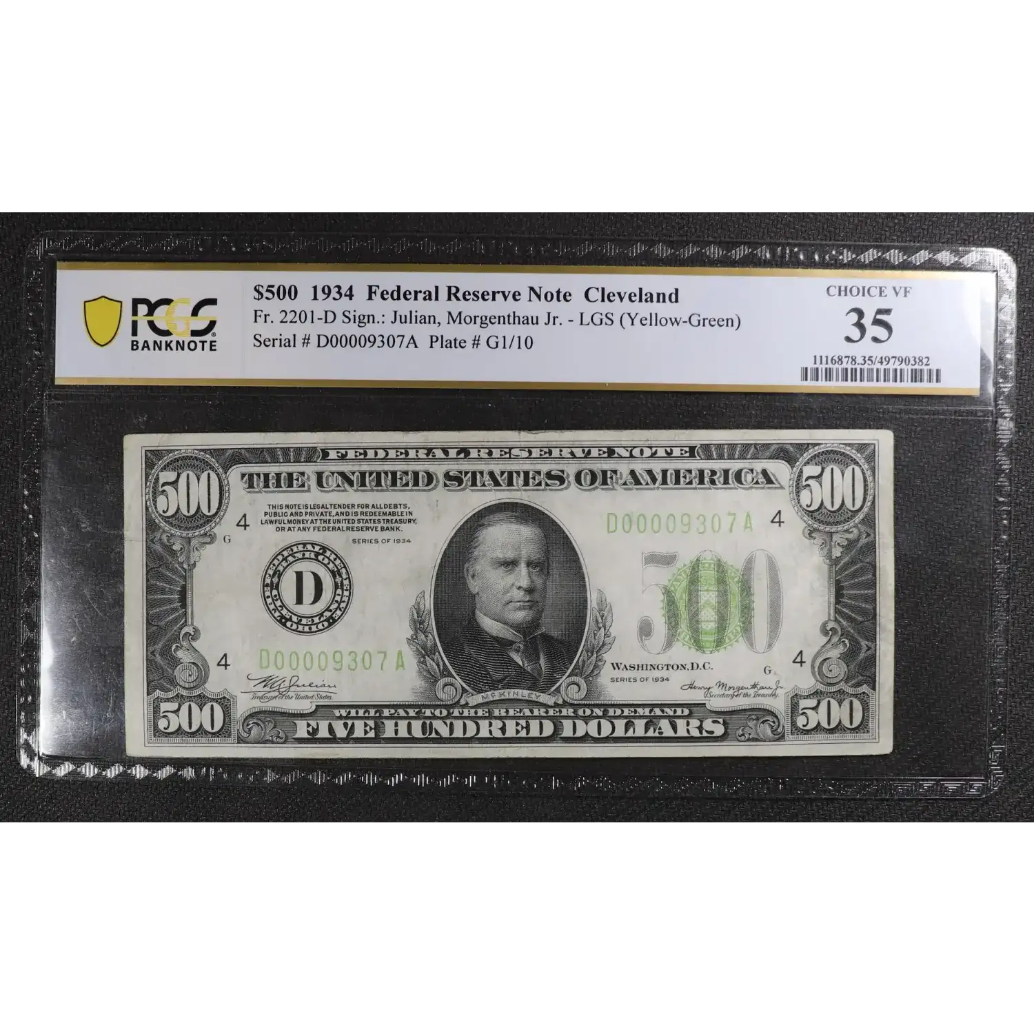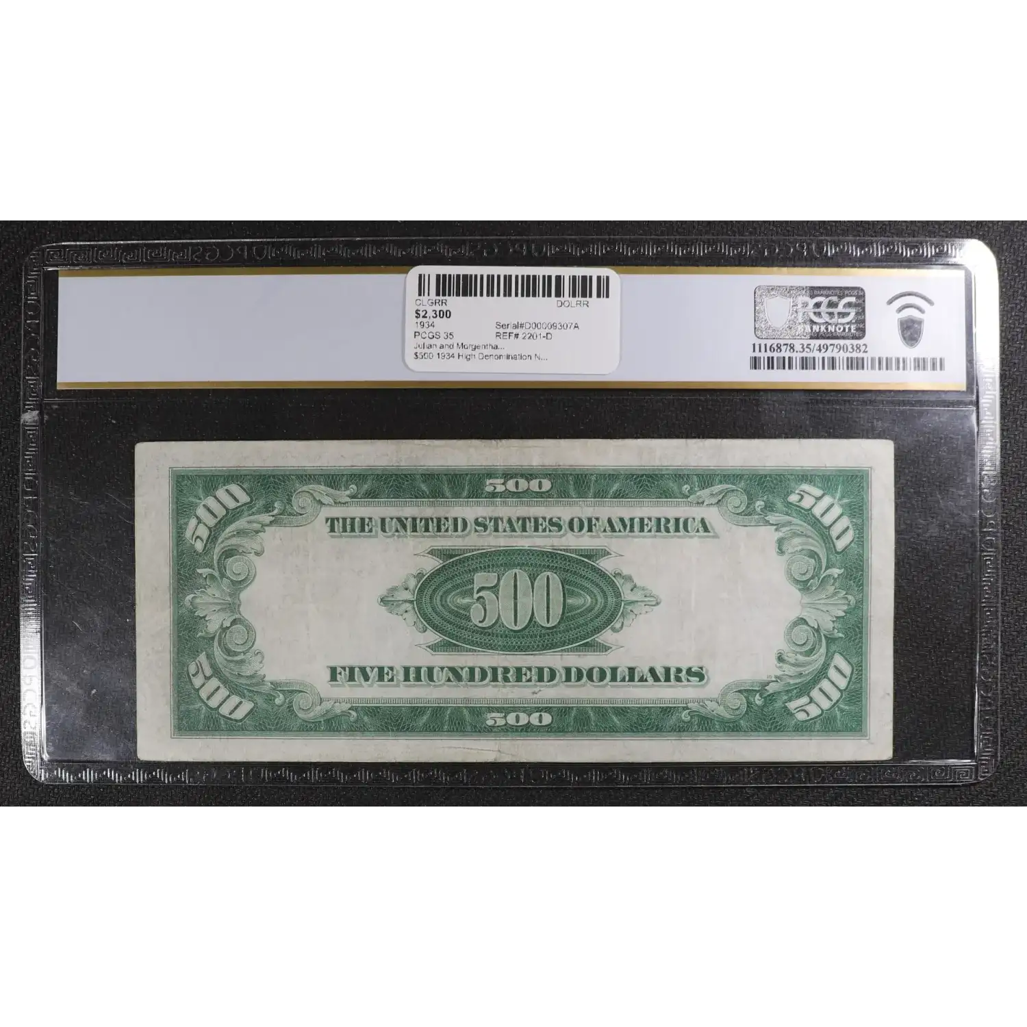 $500 1934 High Denomination Notes 2201-D