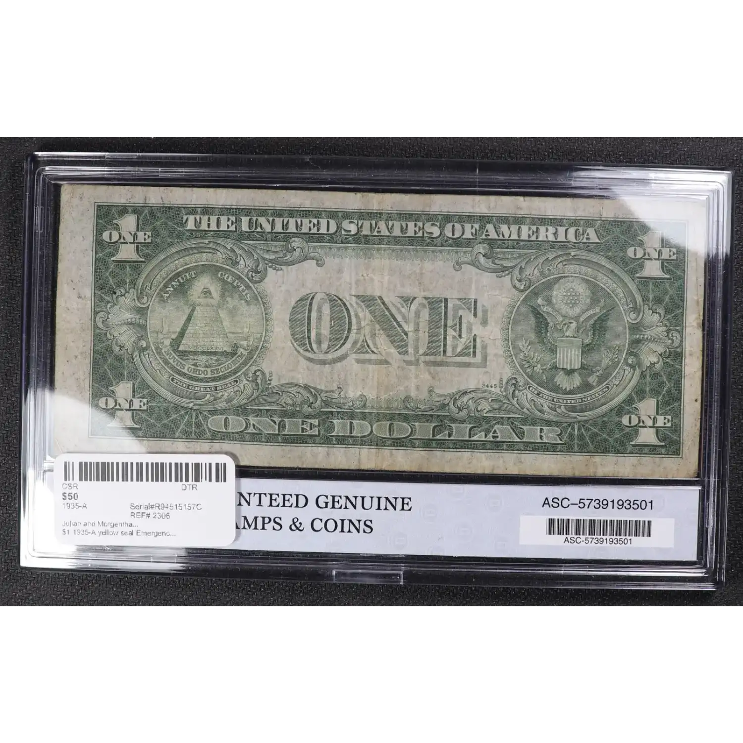 $1 1935-A yellow seal Emergency Notes Issued During WW2 2306