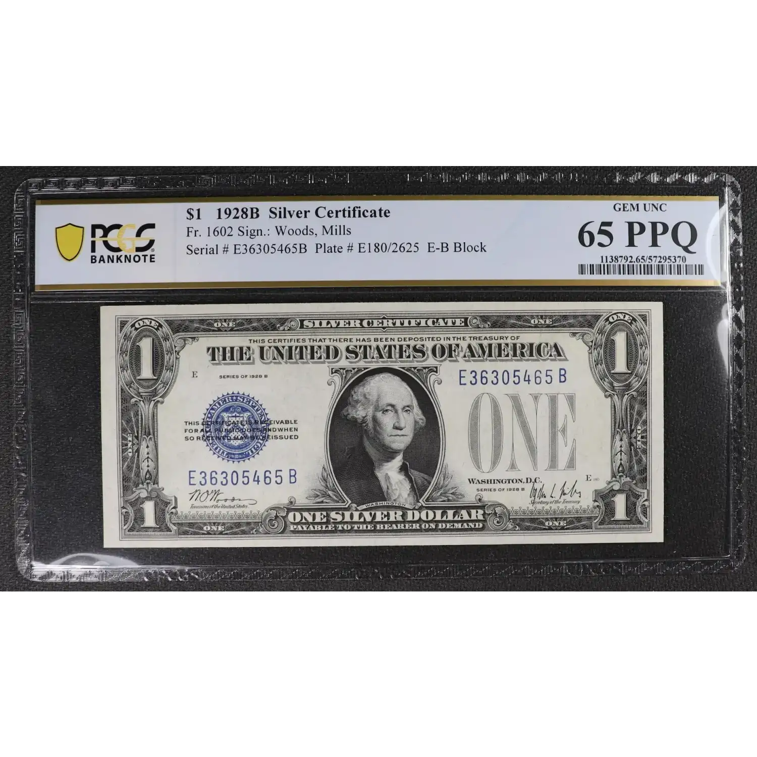 $1 1928-B blue seal. Small Silver Certificates 1602