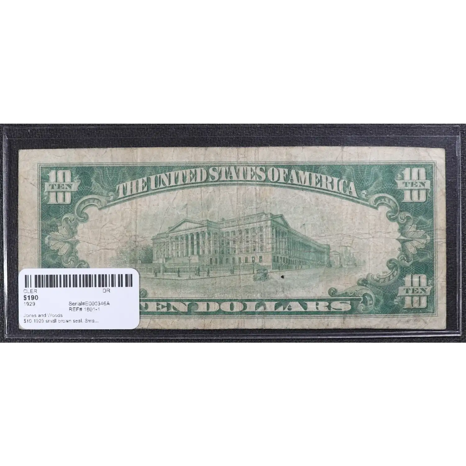 $10 1929 small brown seal. Small National Bank Notes 1801-1
