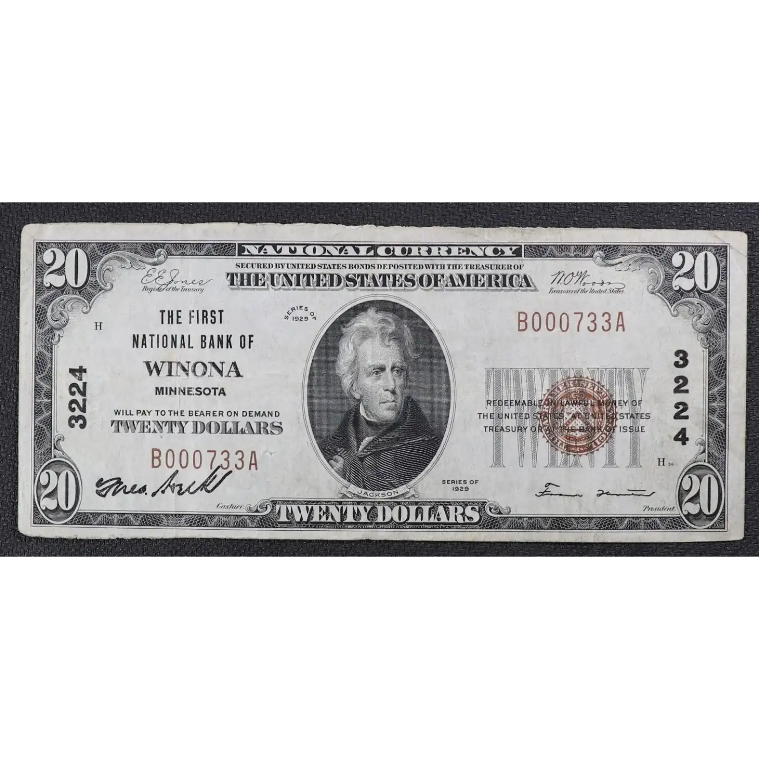 $20 1929 small brown seal. Small National Bank Notes 1802-1