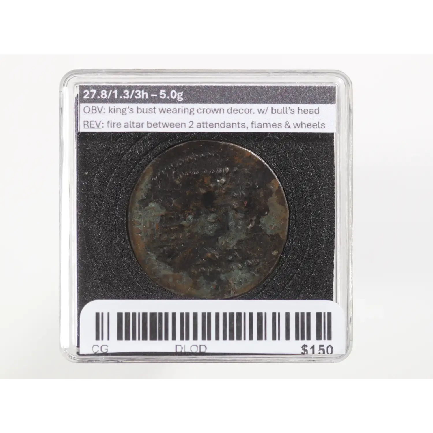 Central Asia Hunnic Tribes Nezak Huns BI Drachm 630-711 AD King/Fire AltarCoin is in an unsealed "quadrum" case for display purposes, simply insert a thumbnail into the recessed corner and pull apartour inventory sticker with the barcode is an easy peel sticker that leaves no mess behind