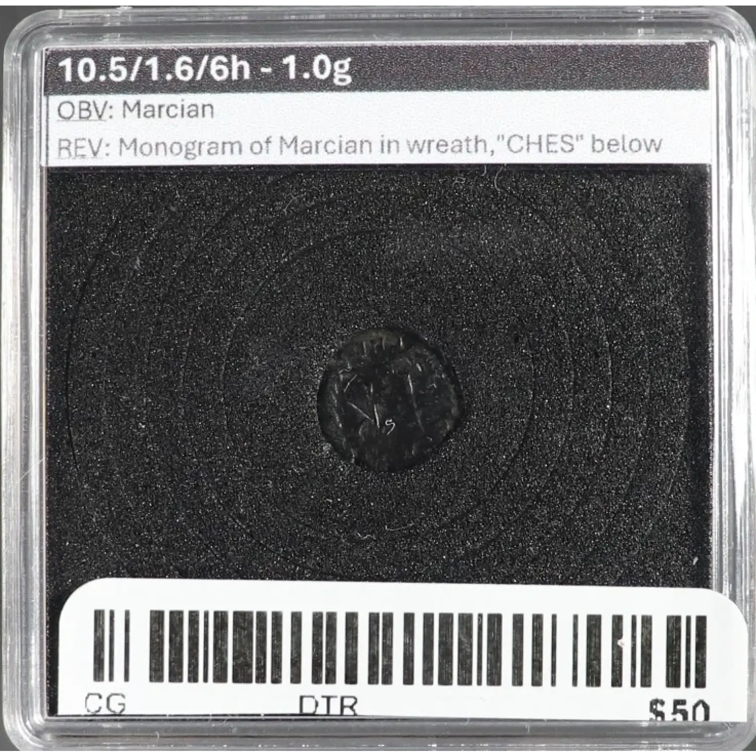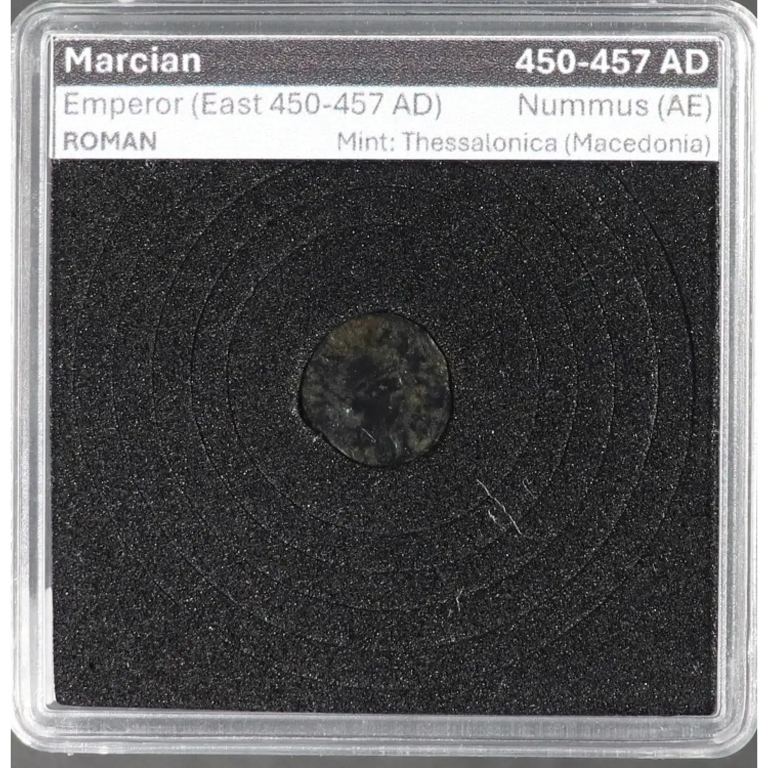Marcian AE Nummus Thessalonica mint 450-457 AD Well centeredCoin is in an unsealed "quadrum" holder for display purposes, insert a thumbnail in bottom left corner to pull apart
