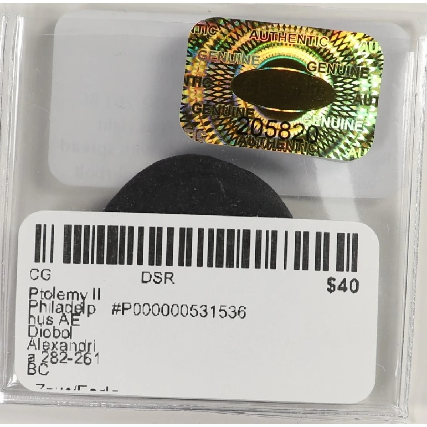 | Year | Ptolemy II Philadelphus AE Diobol Alexandria 282-261 BC |