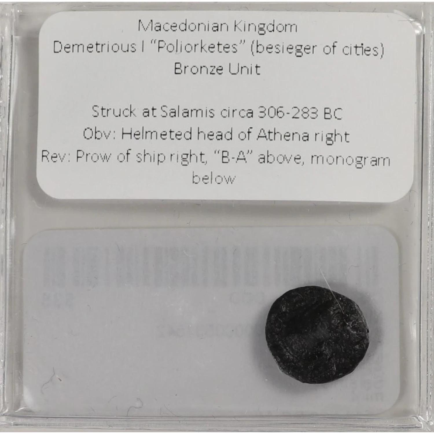 Macedonian Demetrious I Poliorketes AE Unit Salamis mint Ancient Greek Coin 306-283 BC Athena/Prow