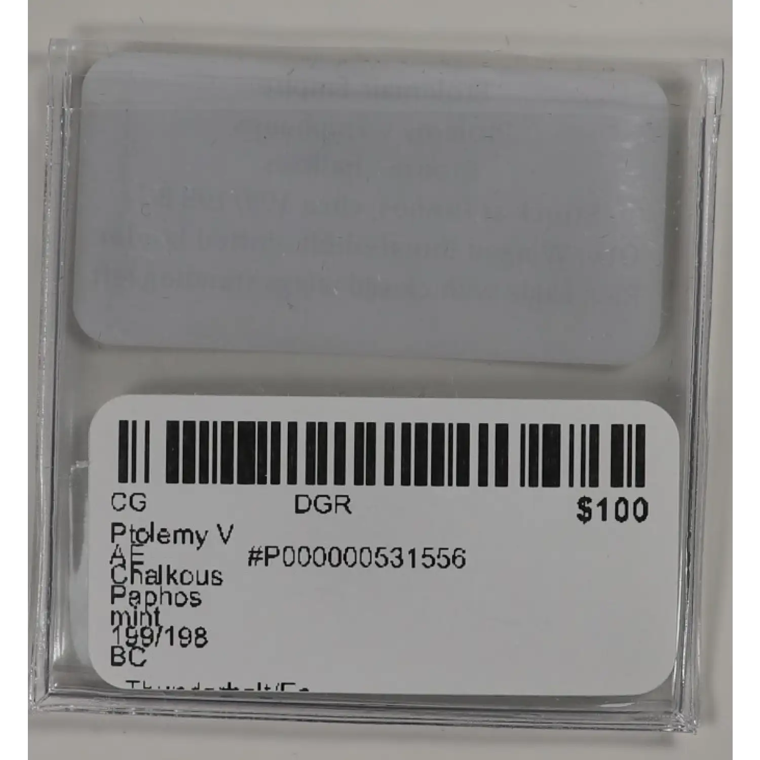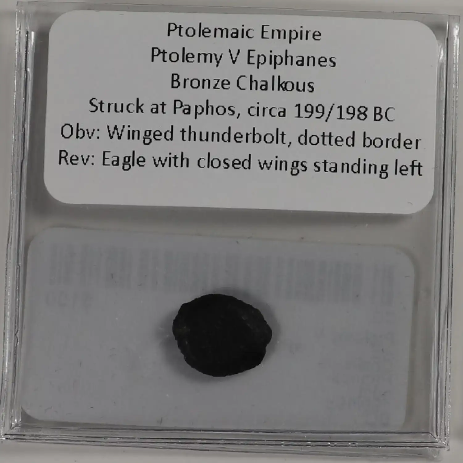 | Year | Ptolemy V AE Chalkous Paphos mint 199/198 BC |