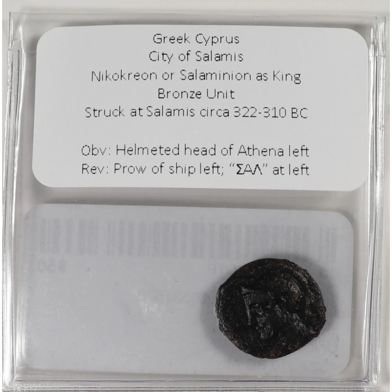 Cyprus, Salamis Nikokreon or Salaminion AE Unit Ancient Greek Coin 322-310 BC Athena/Prow