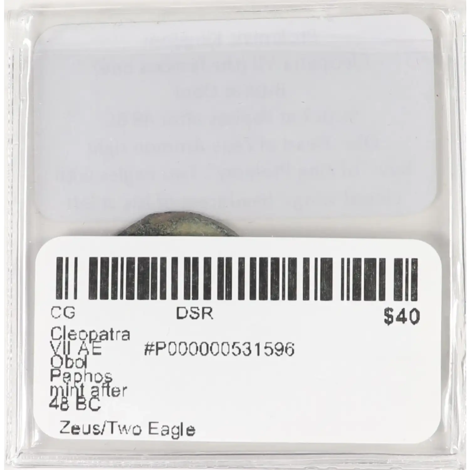Cleopatra VII AE Obol Paphos mint after 48 BC Ancient Greek Coin Zeus/Two Eagles Isis headdress