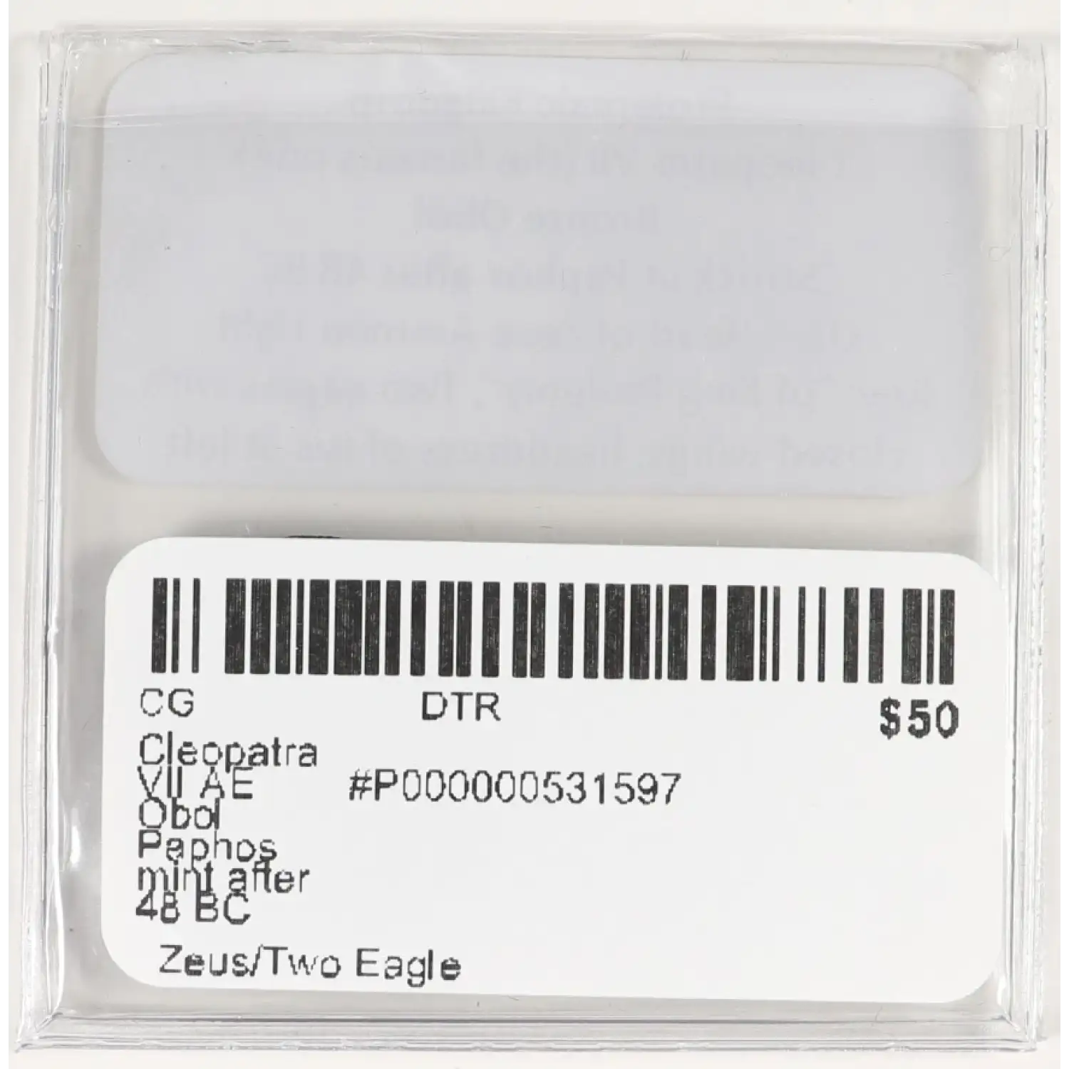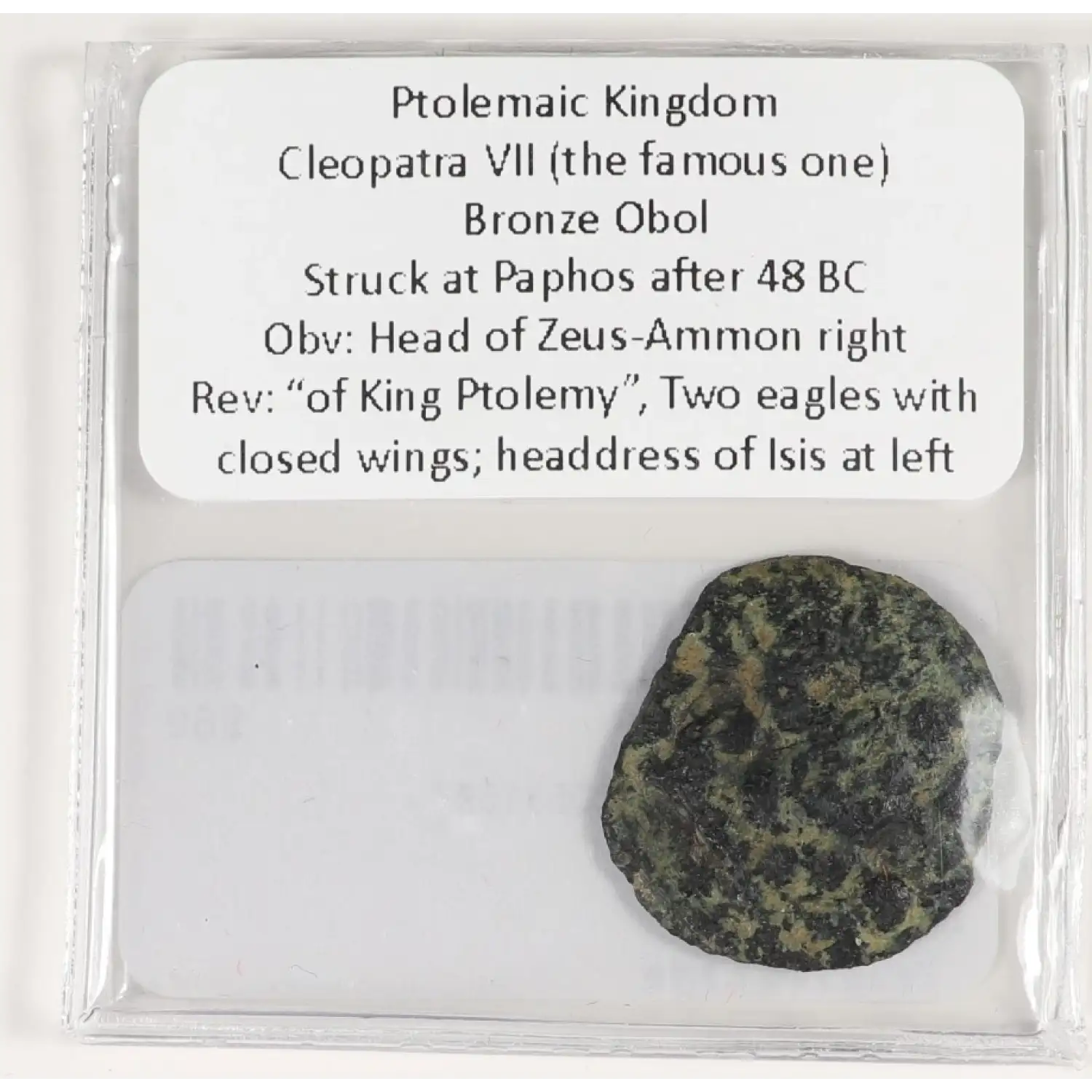 Cleopatra VII AE Obol Paphos mint after 48 BC Zeus/Two Eagles Isis headdress