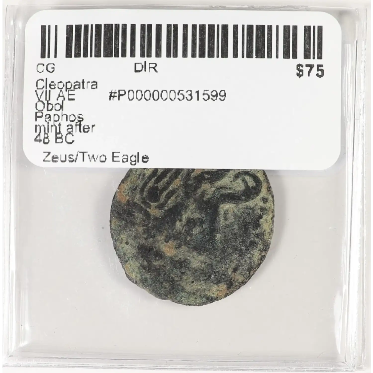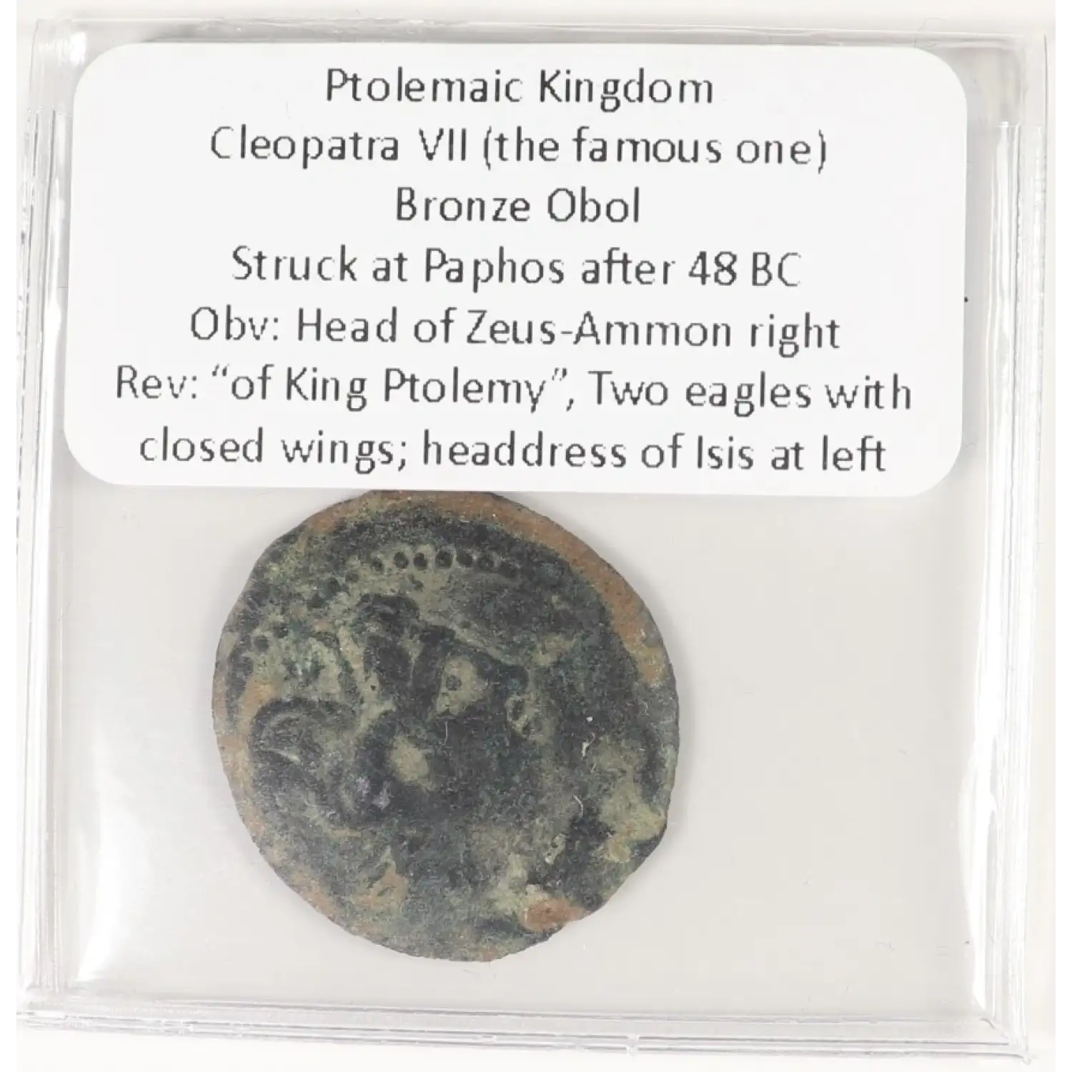 Cleopatra VII AE Obol Paphos mint after 48 BC Zeus/Two Eagles Isis headdress