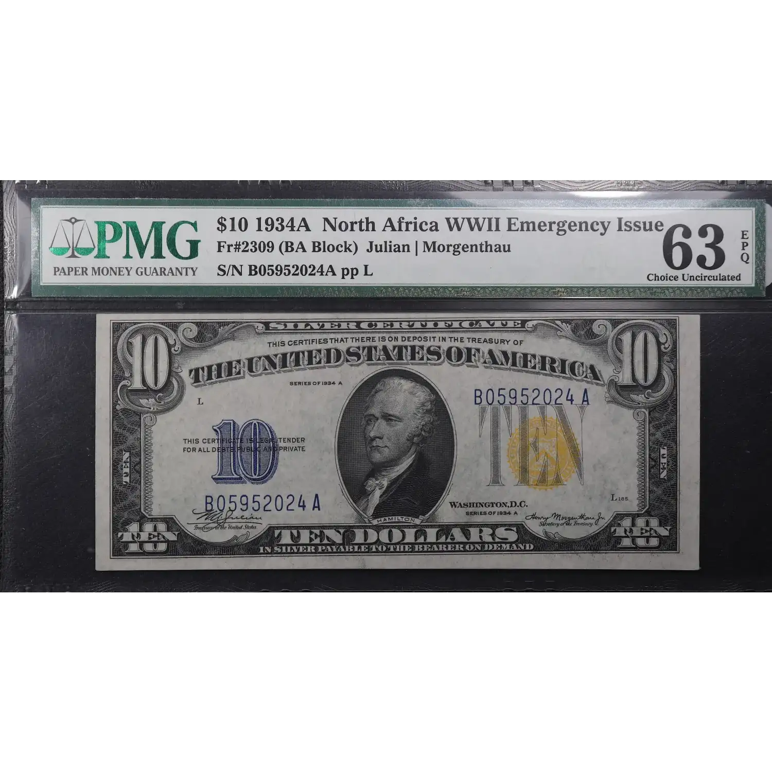 $10 1934-A yellow seal Emergency Notes Issued During WW2 2309