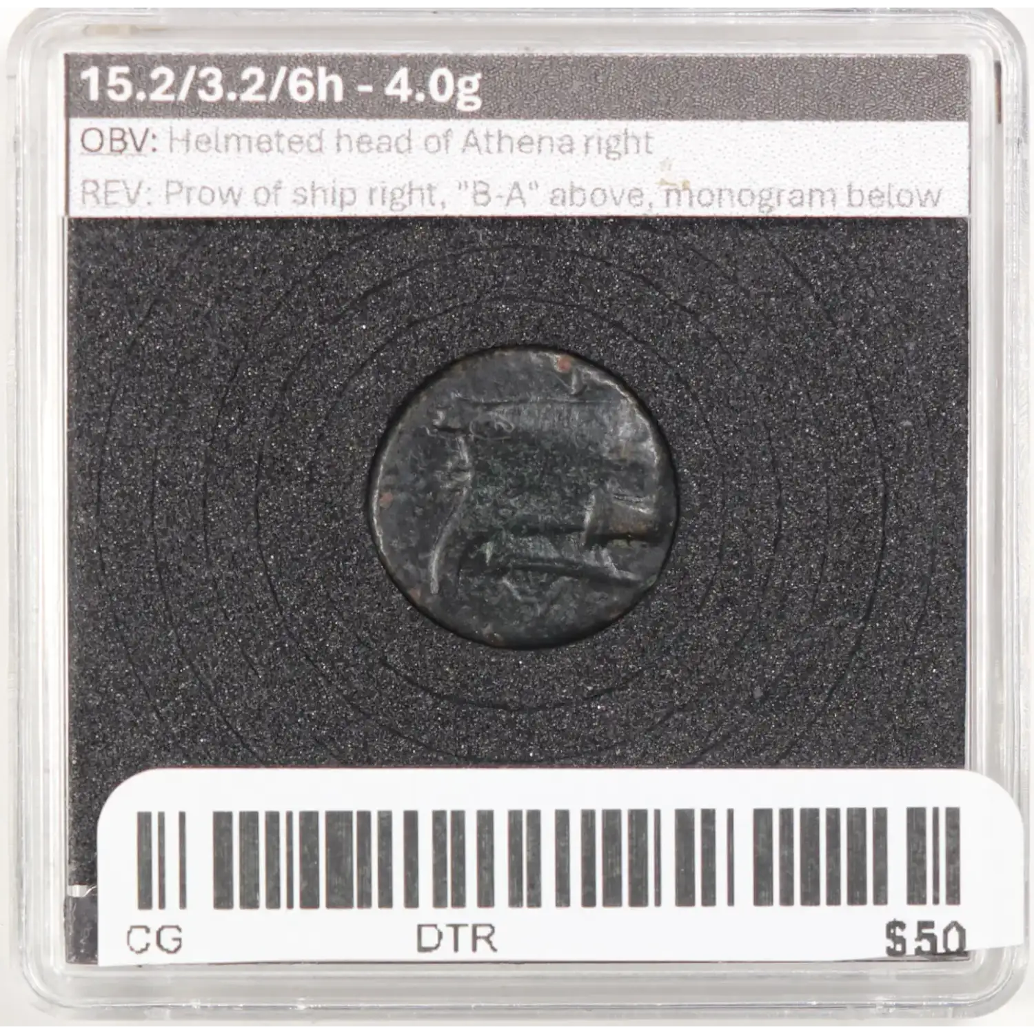 Macedonian Demetrious I Poliorketes AE Unit Salamis mint 306-283 BC Athena/ProwCoin is in an unsealed "quadrum" holder for display purposes, insert a thumbnail in bottom rightcorner to pull apart