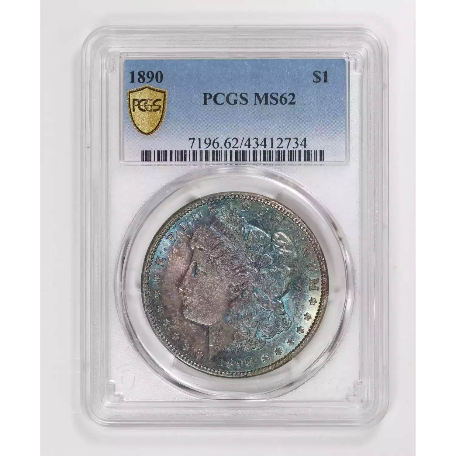 1890 Morgan Silver Dollar PCGS MS-62 Blue Toning
