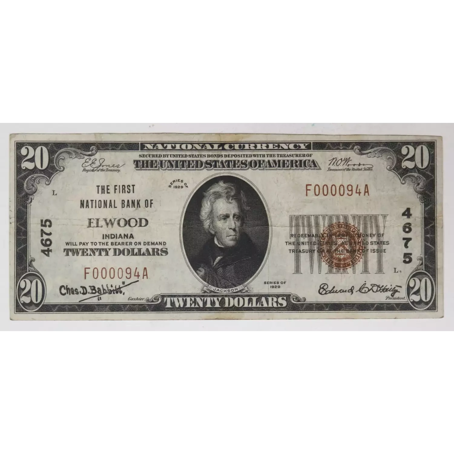 $20 1929 small brown seal. Small National Bank Notes 1802-1