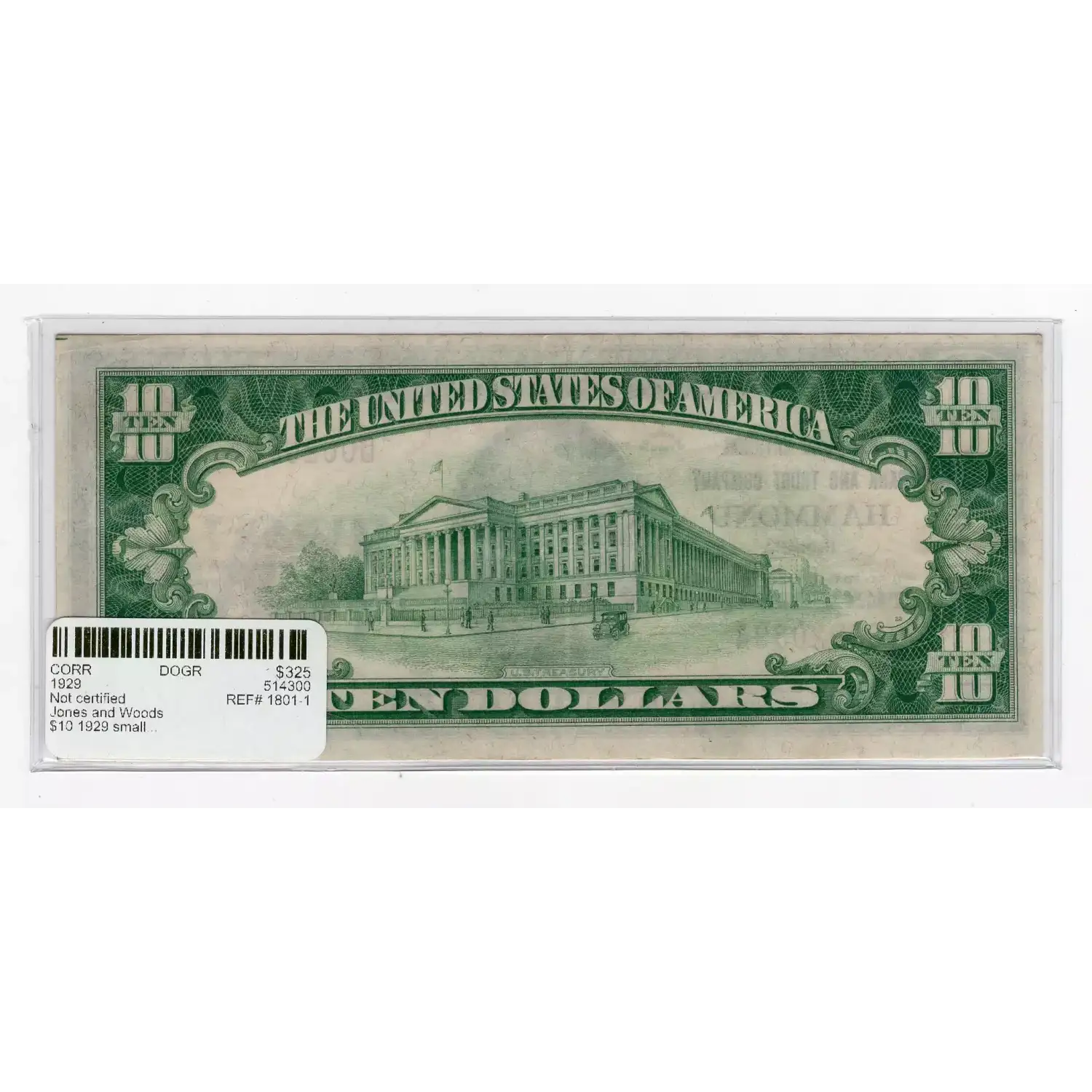$10 1929 small brown seal. Small National Bank Notes 1801-1