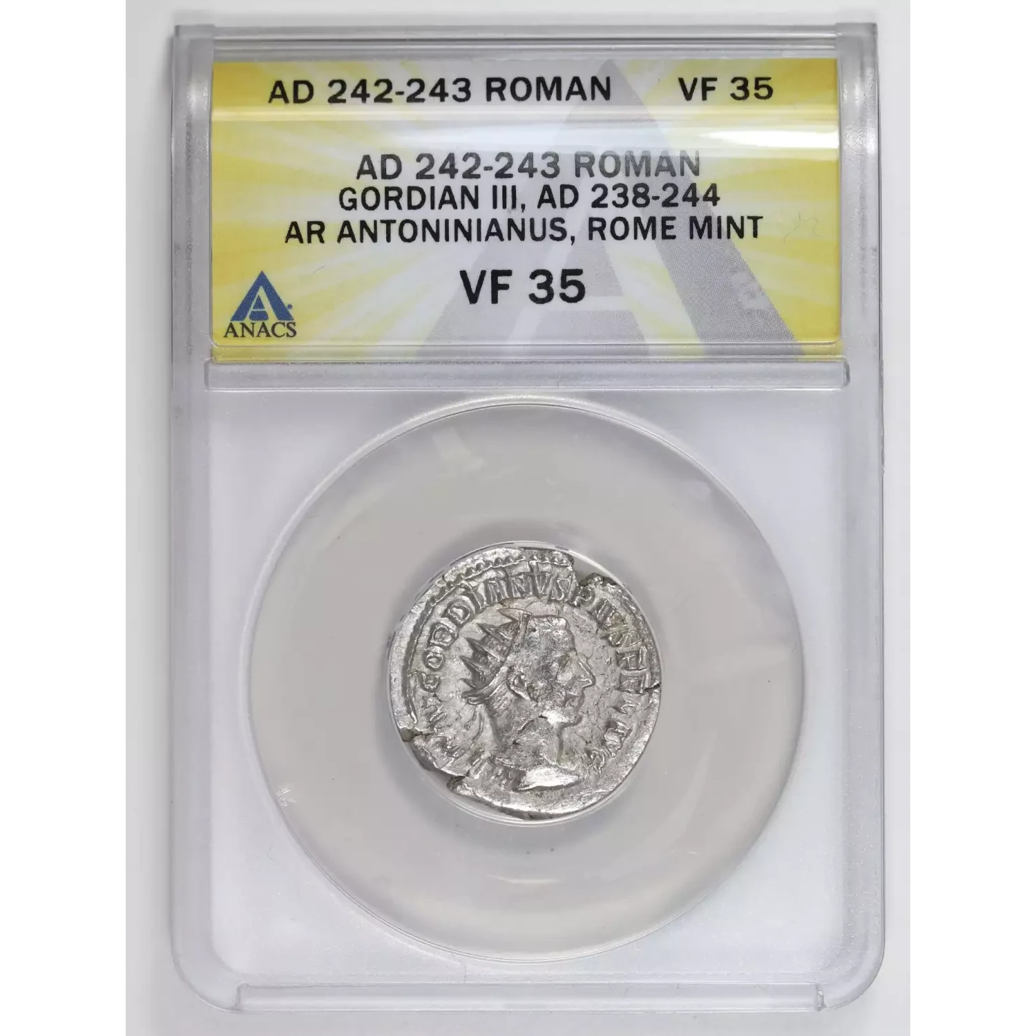 242-243 AD Ancient Roman Coin ANACS VF-35 AR Antoninianus Gordian III