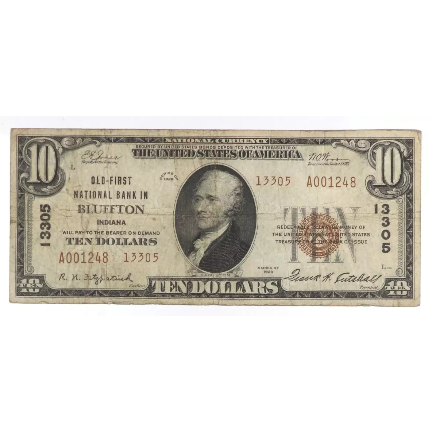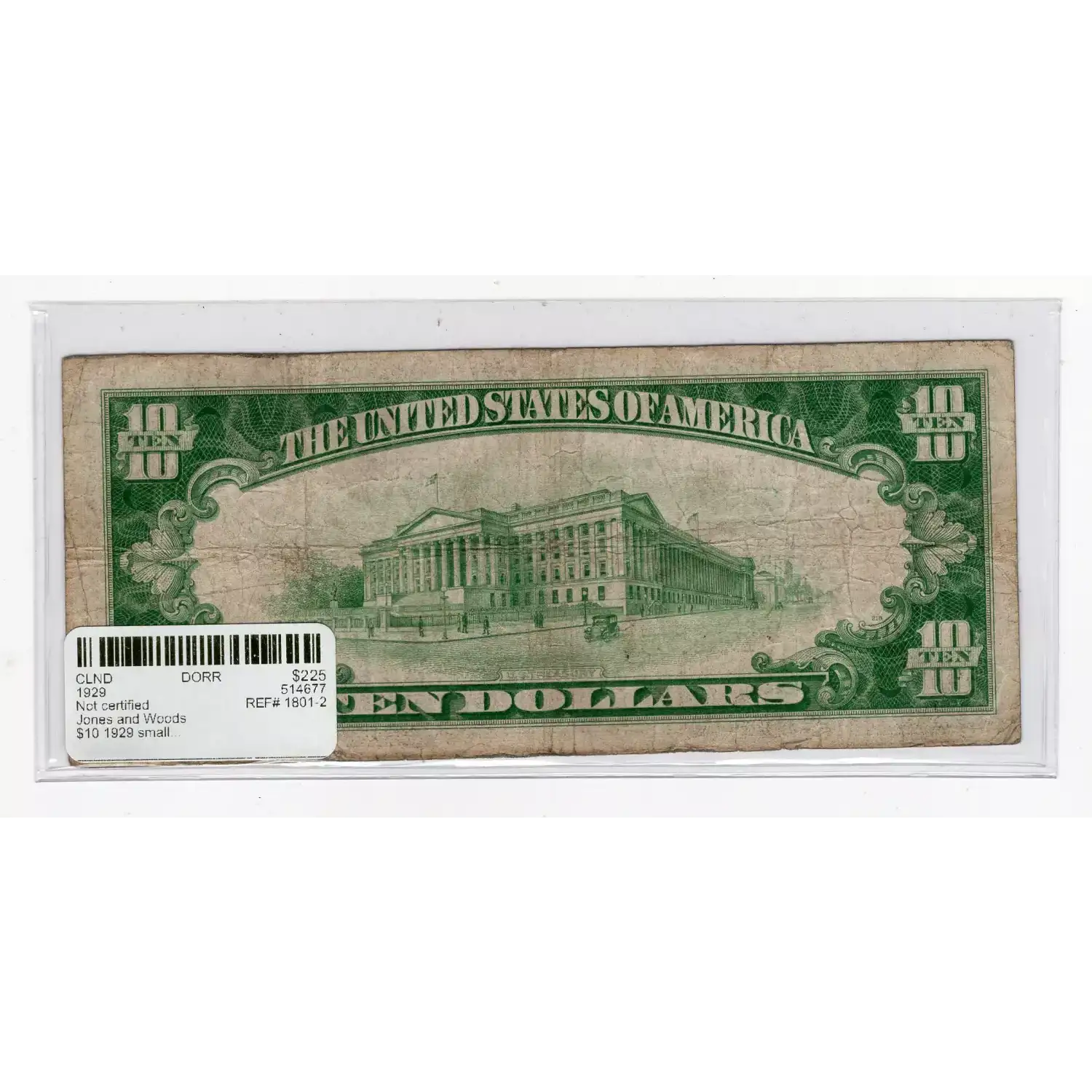 $10 1929 small brown seal. Small National Bank Notes 1801-2