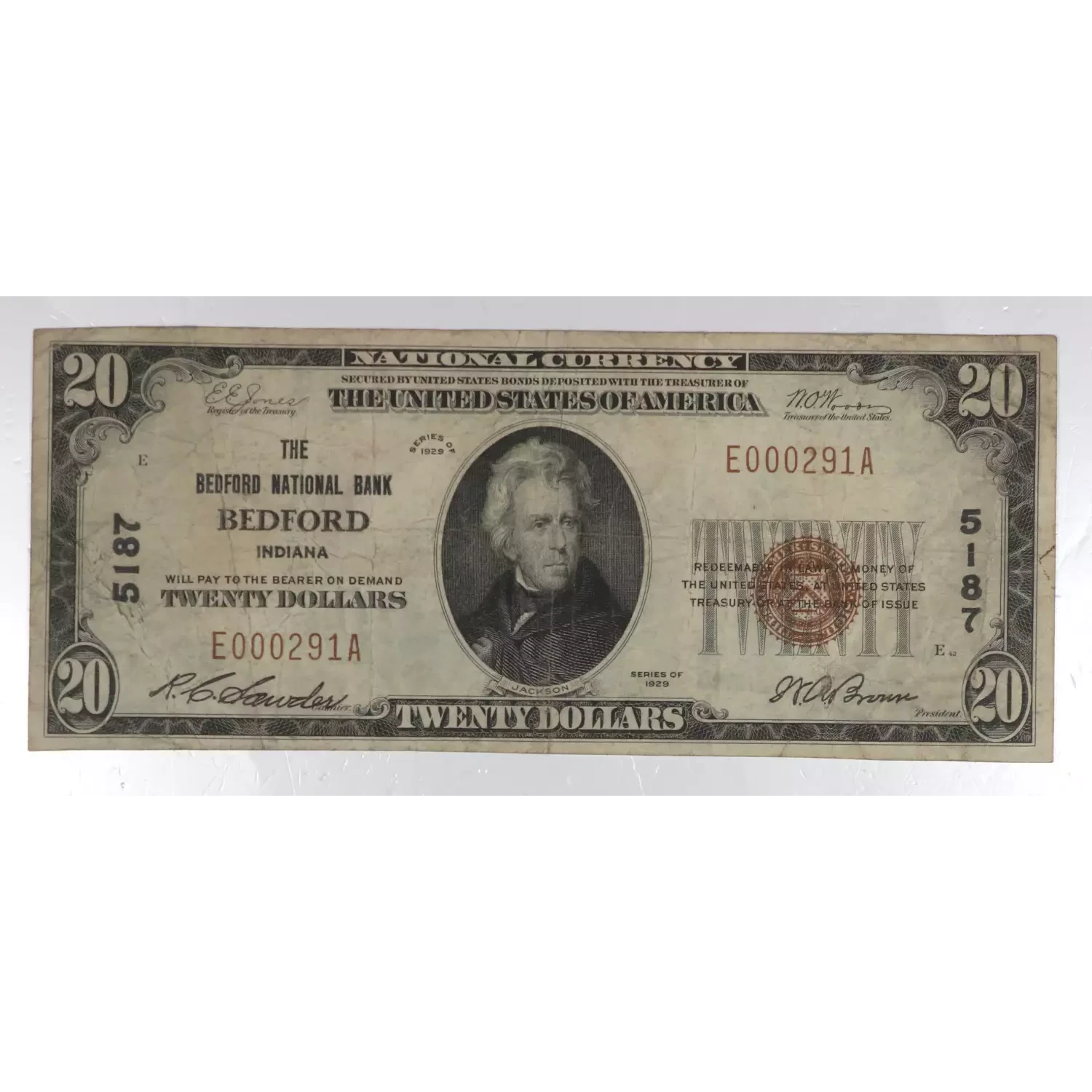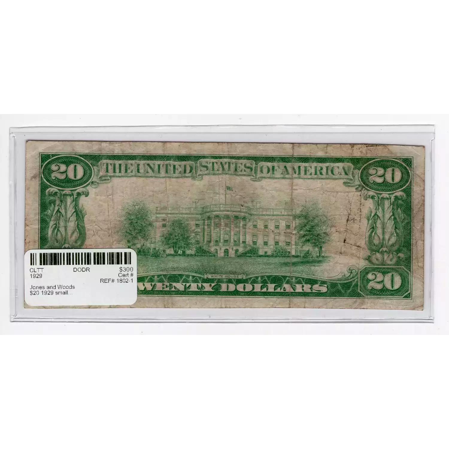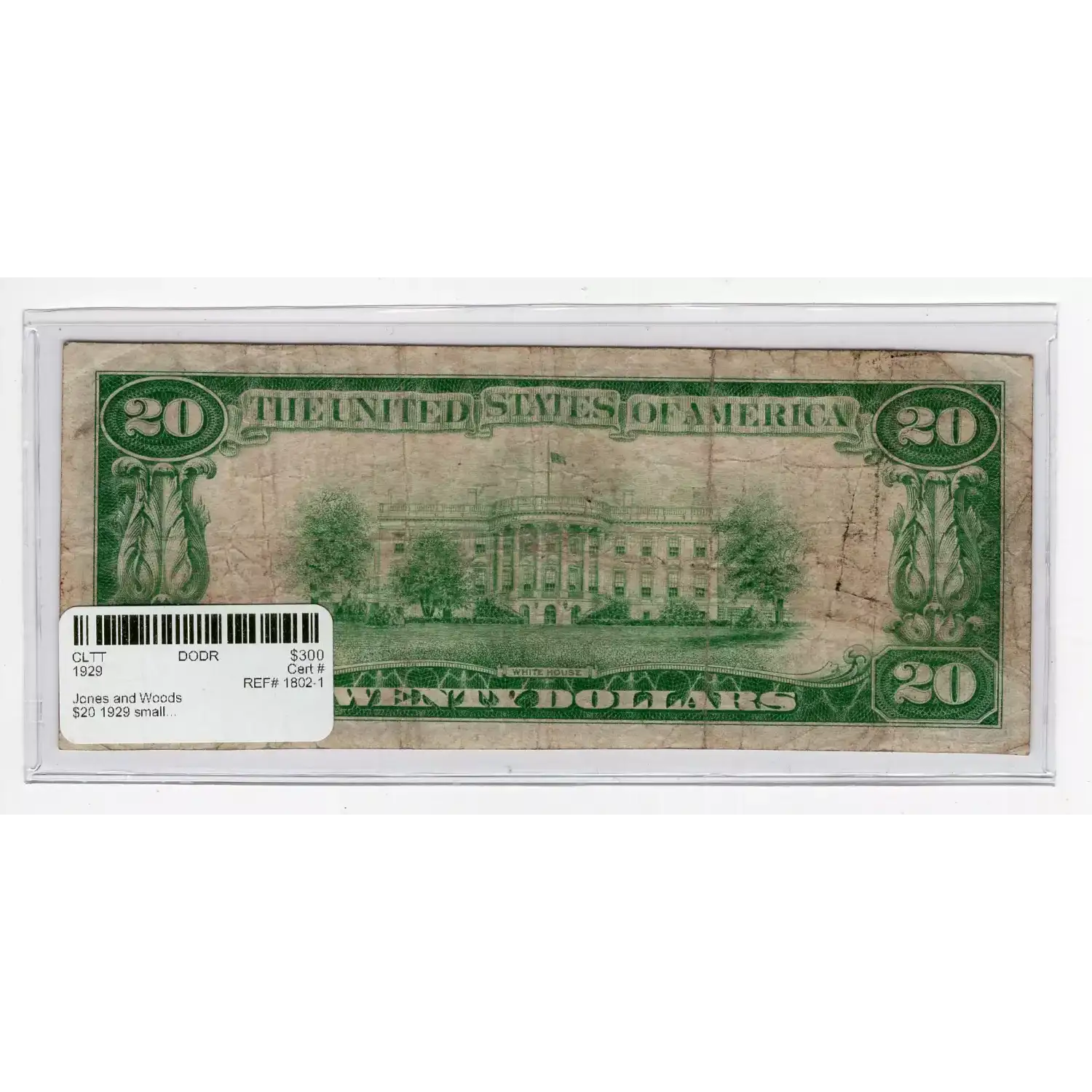 $20 1929 small brown seal. Small National Bank Notes 1802-1