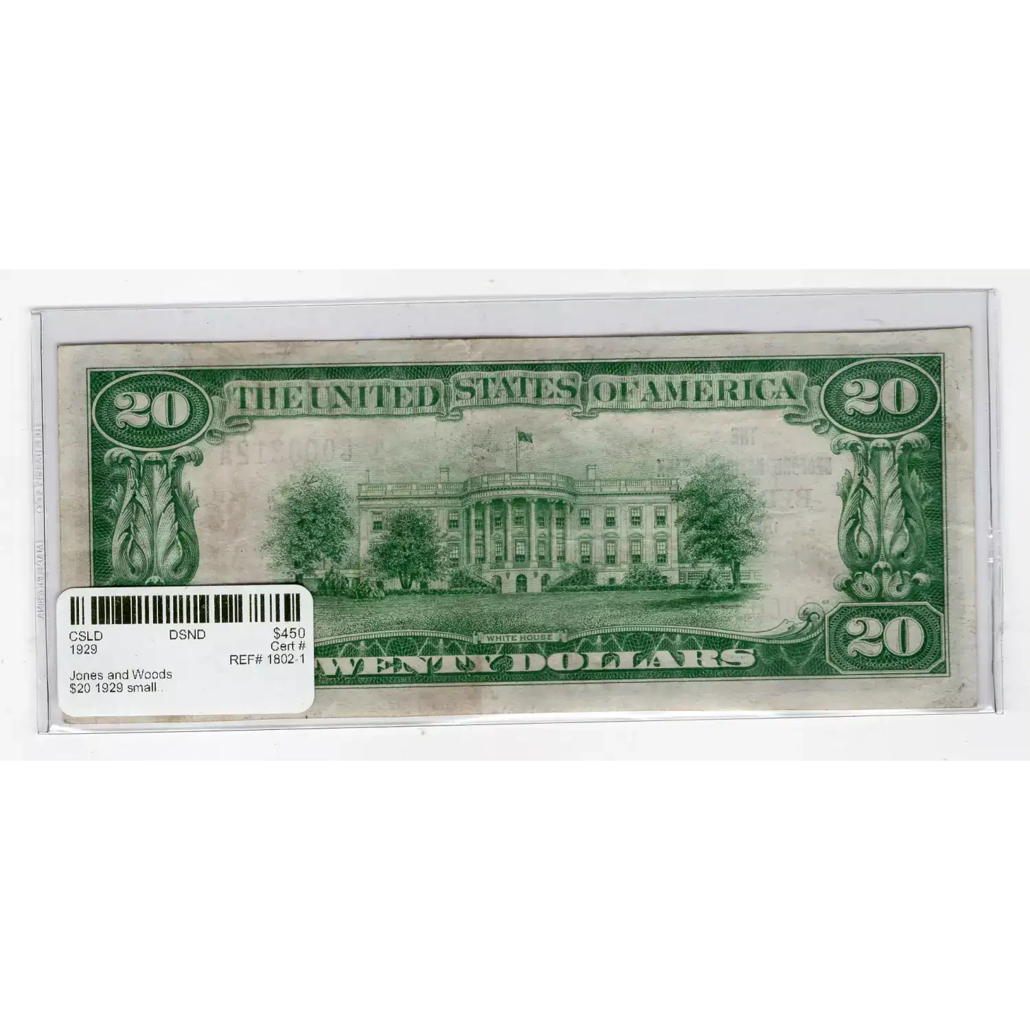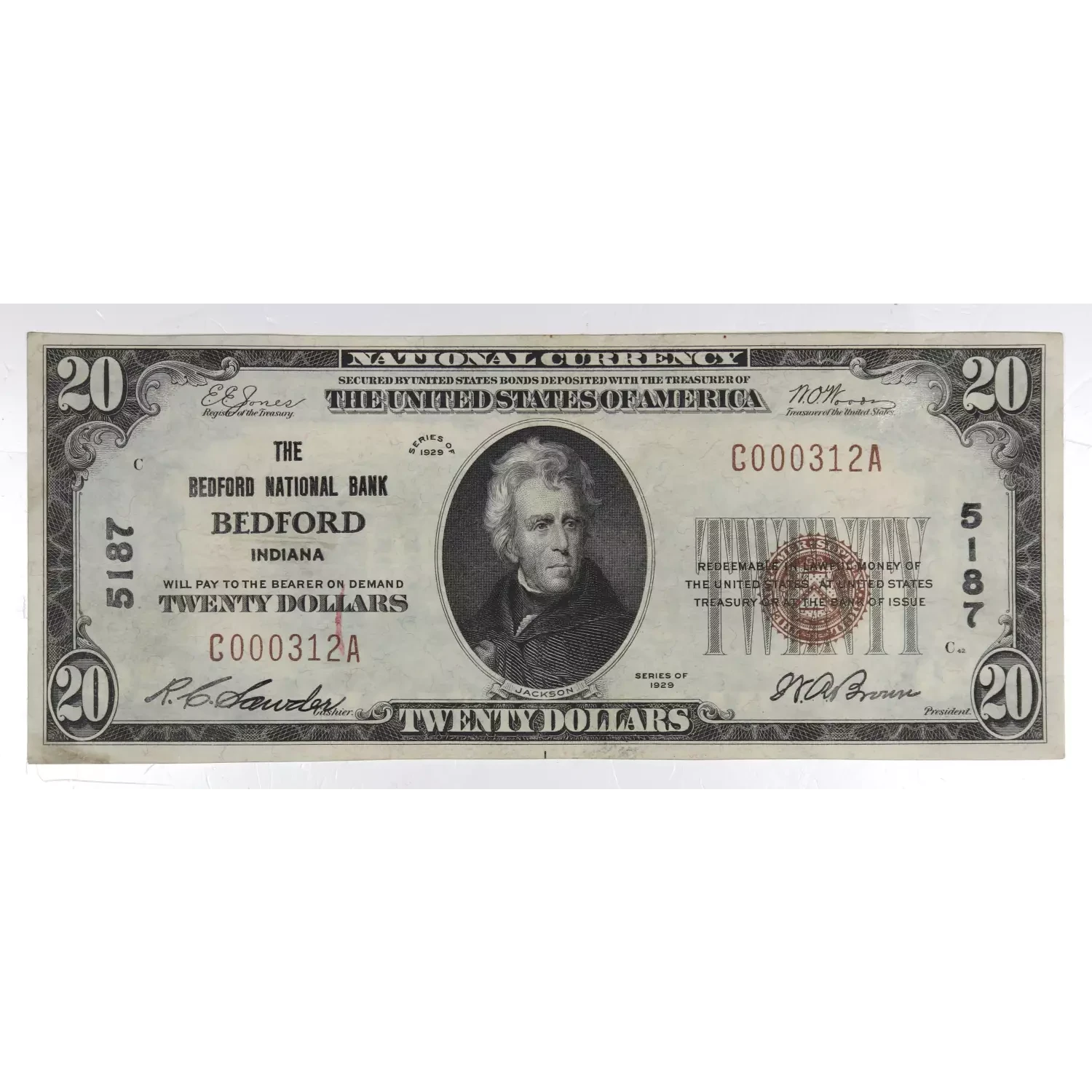 $20 1929 small brown seal. Small National Bank Notes 1802-1