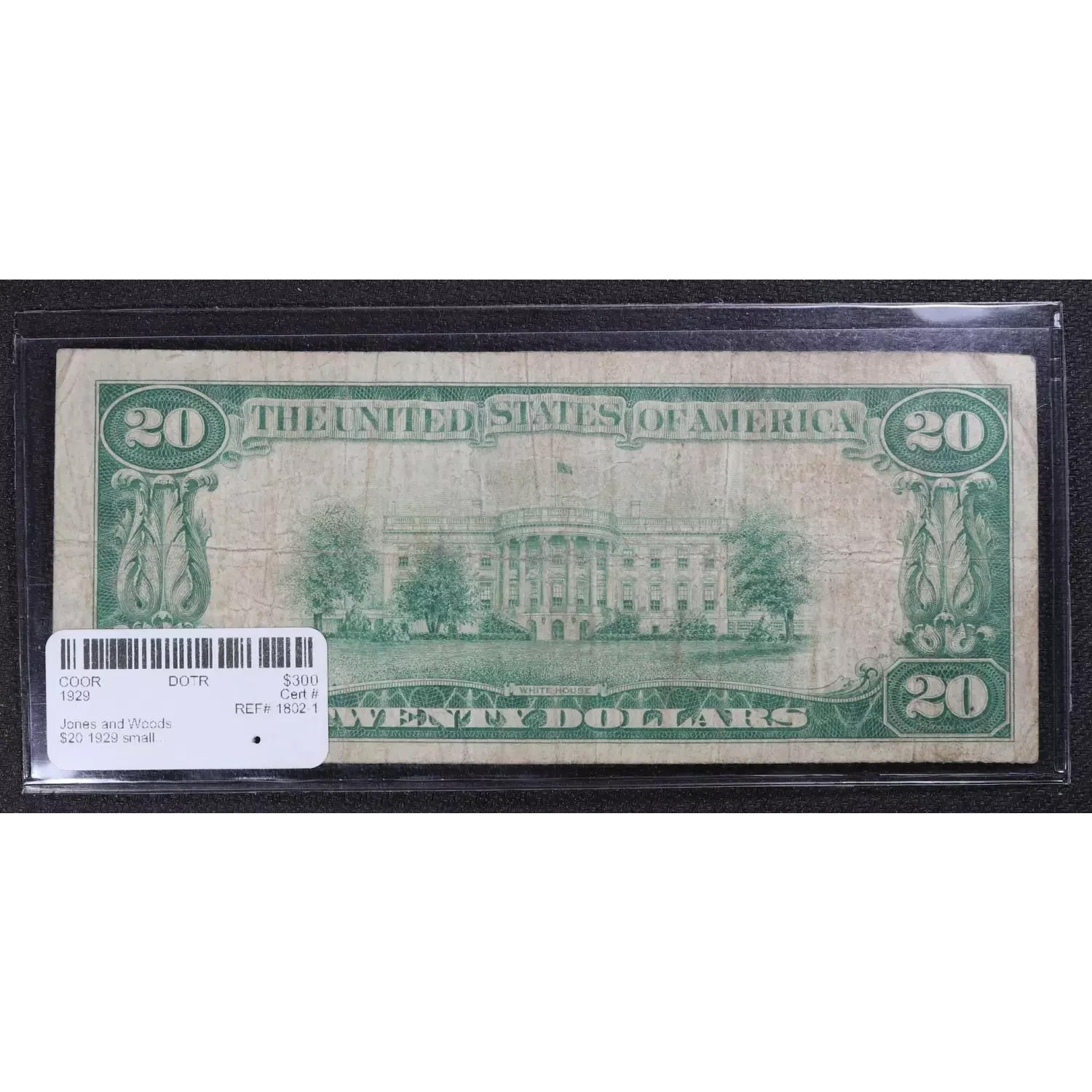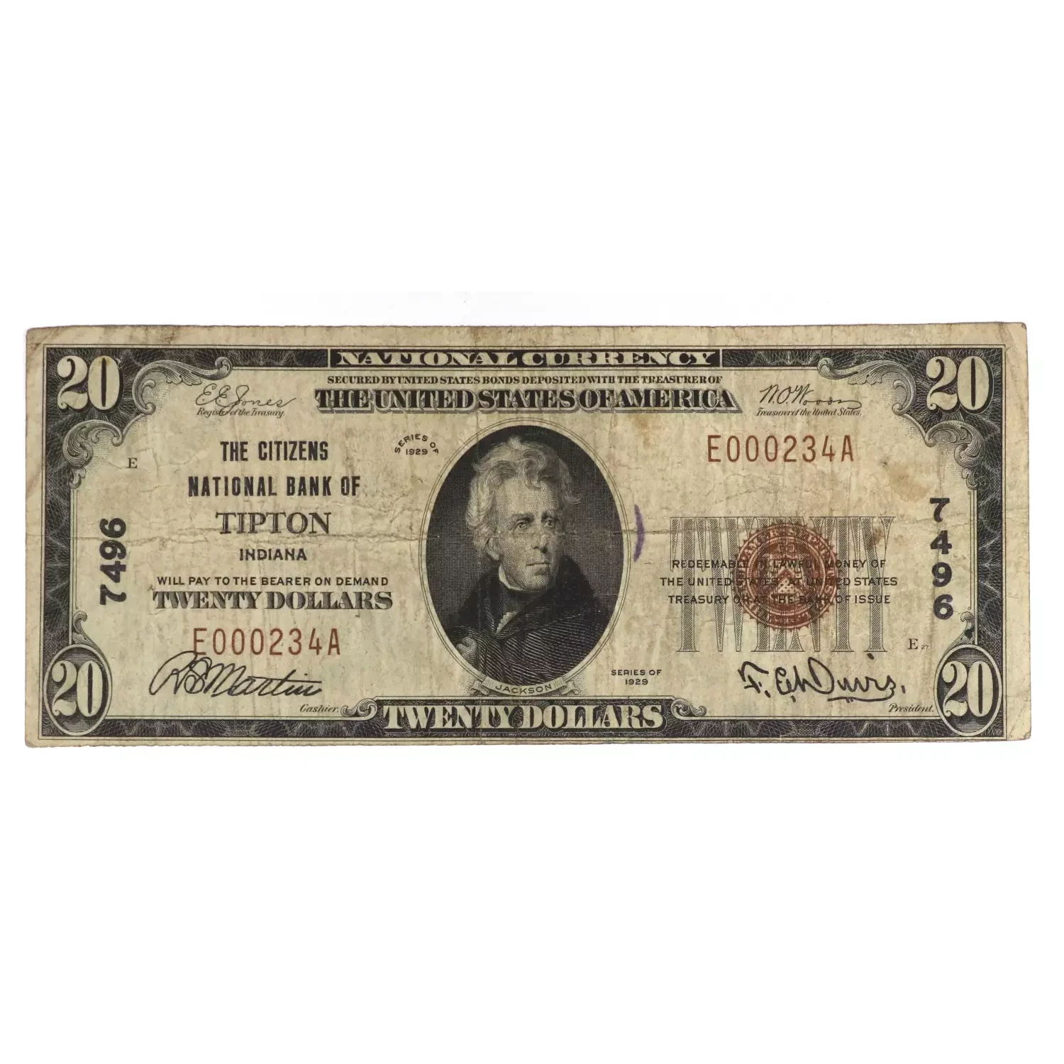 $20 1929 small brown seal. Small National Bank Notes 1802-1