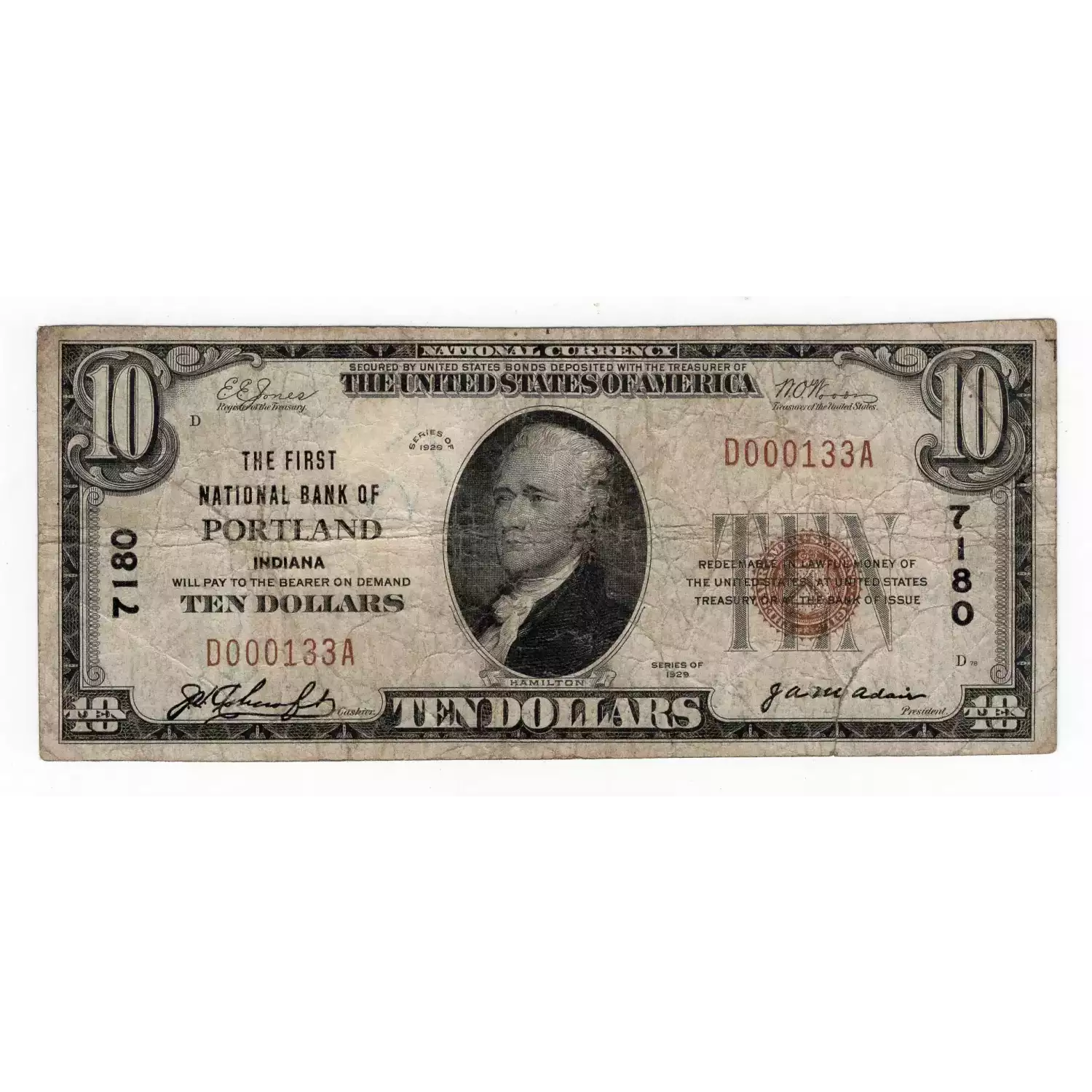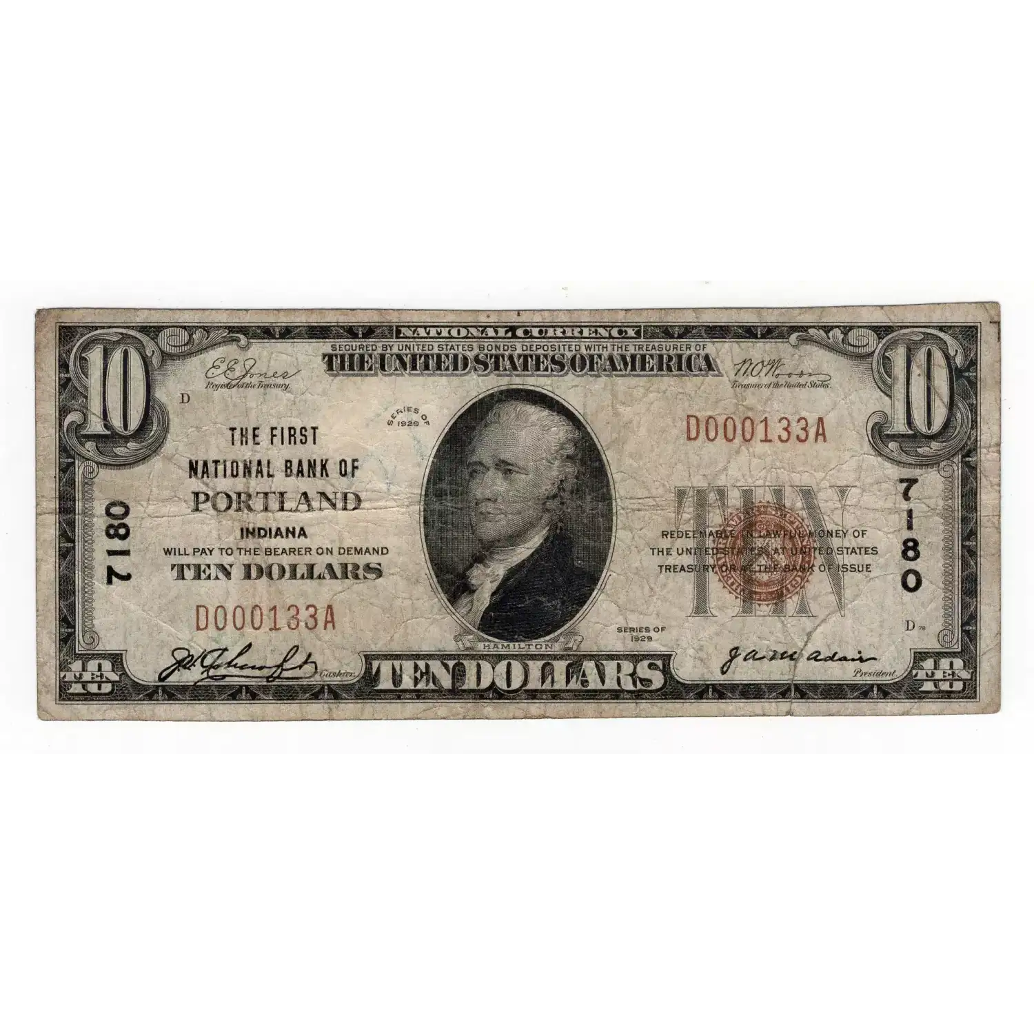 $10 1929 small brown seal. Small National Bank Notes 1801-1