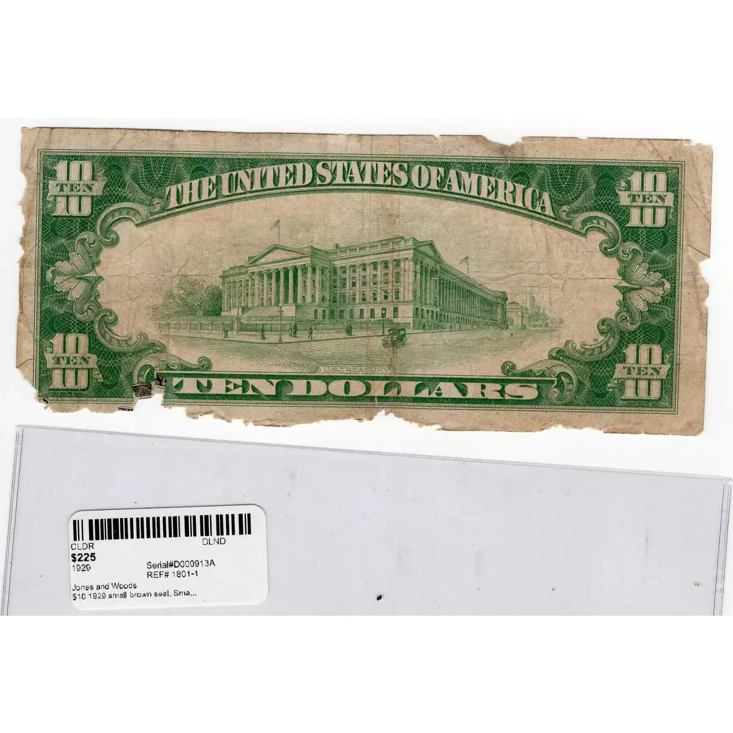 $10 1929 small brown seal. Small National Bank Notes 1801-1