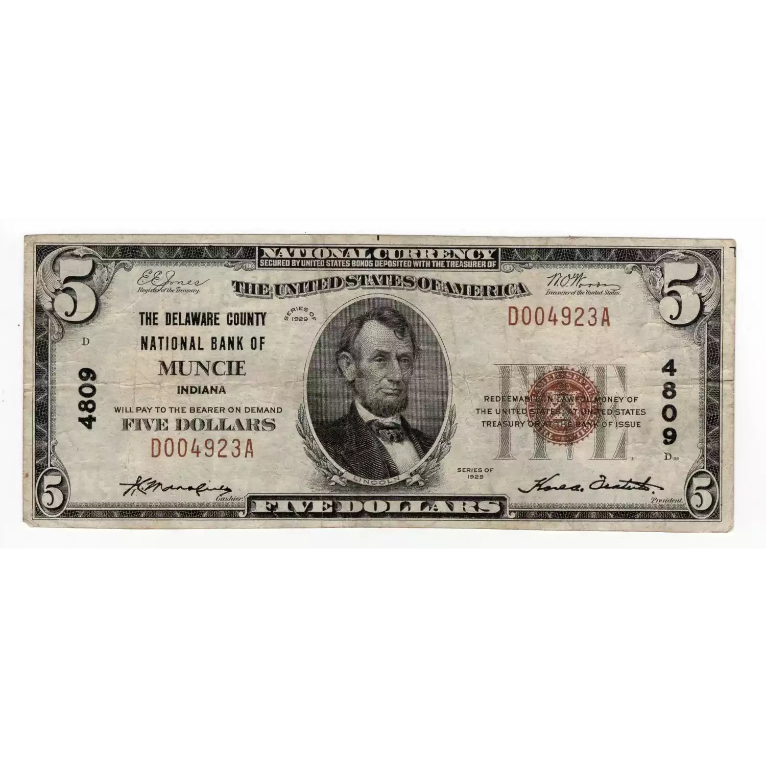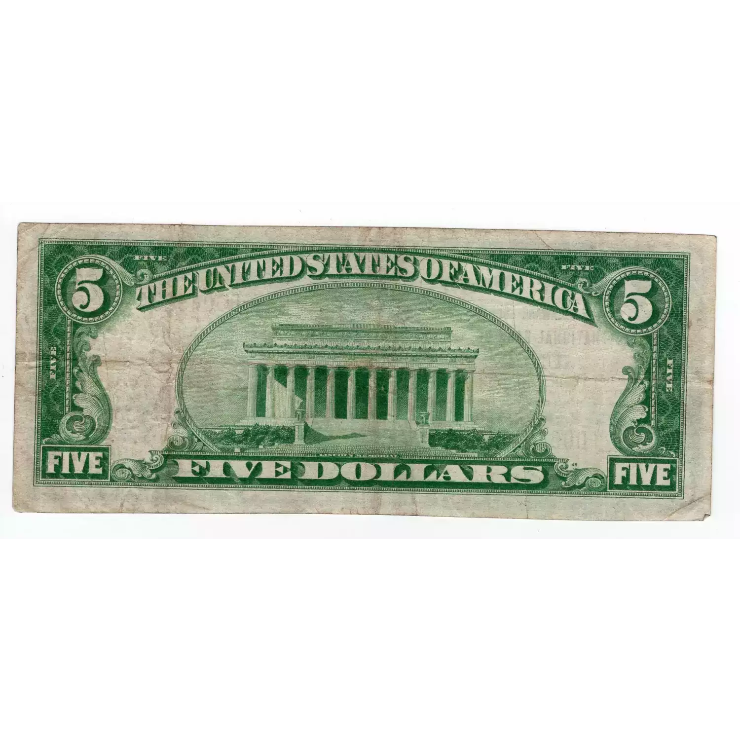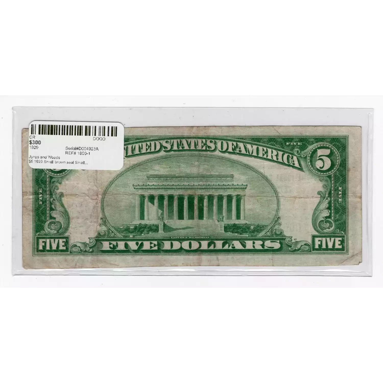 $5 1929 Small brown seal Small National Bank Notes 1800-1