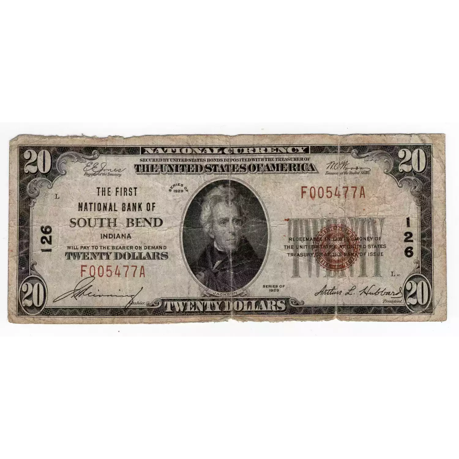 $20 1929 small brown seal. Small National Bank Notes 1802-1