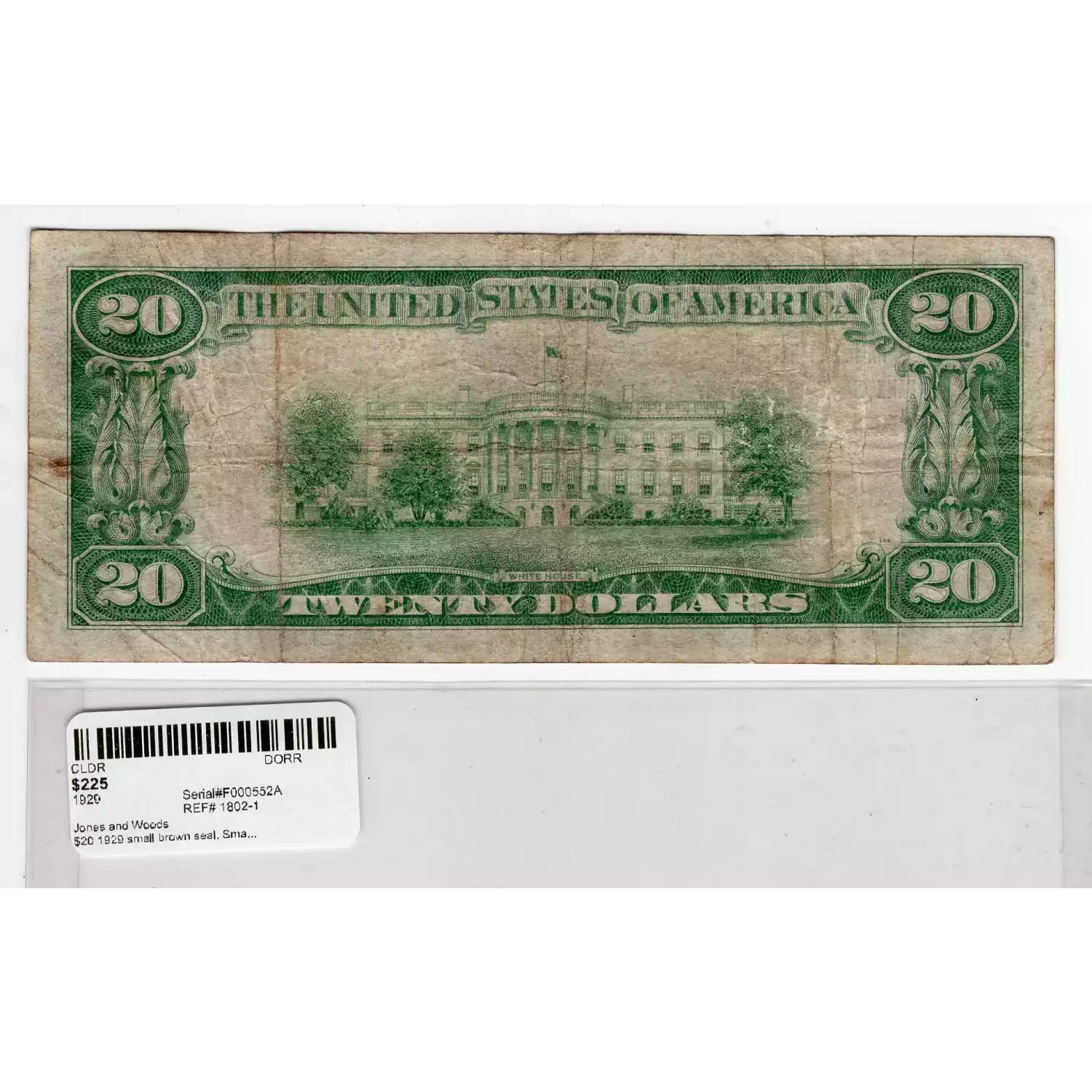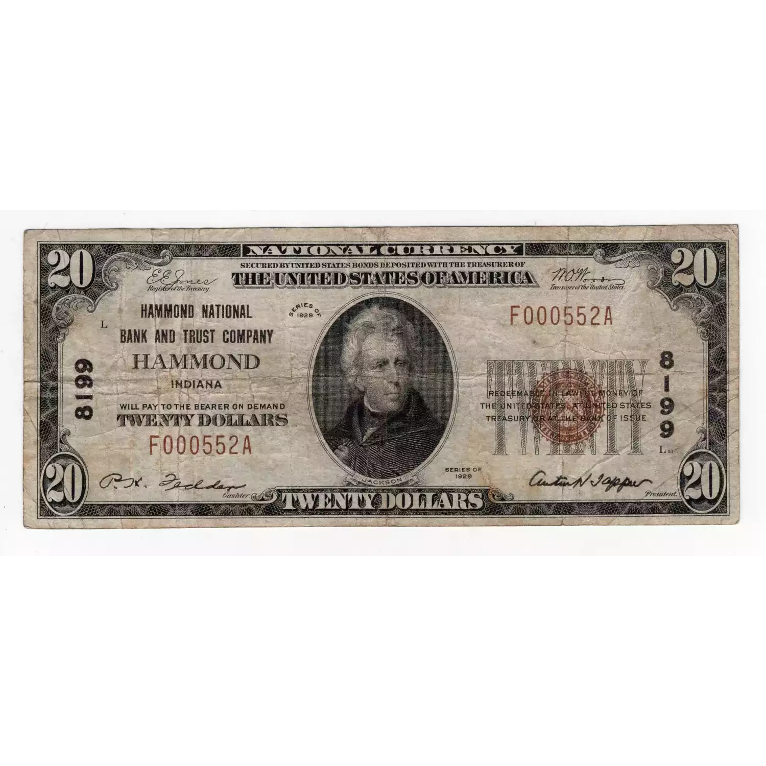 $20 1929 small brown seal. Small National Bank Notes 1802-1