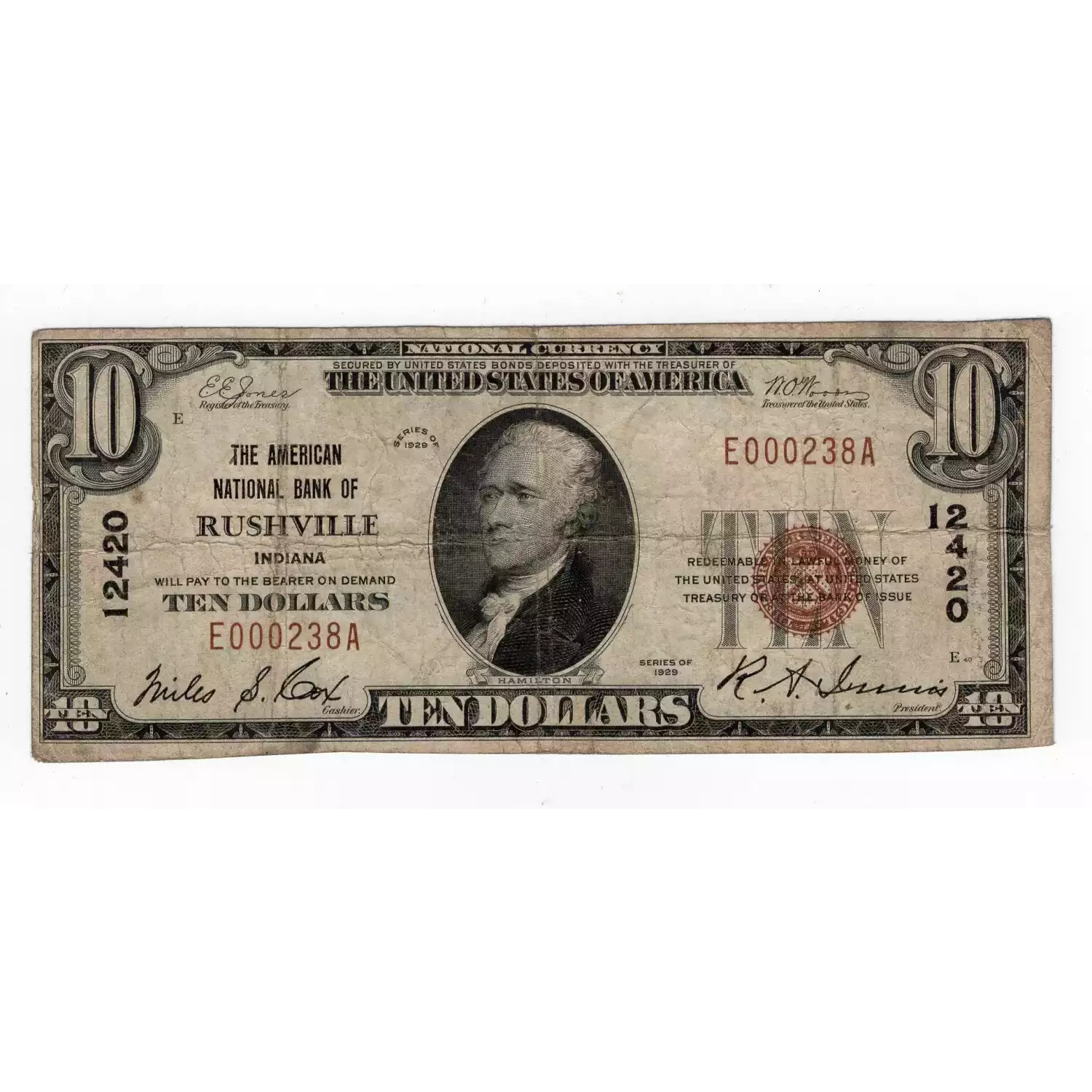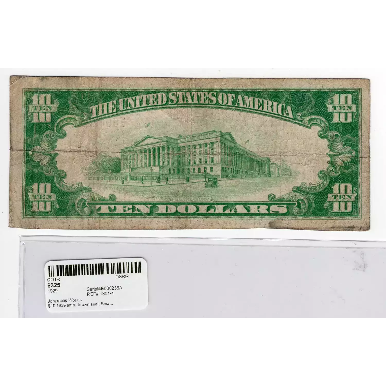 $10 1929 small brown seal. Small National Bank Notes 1801-1