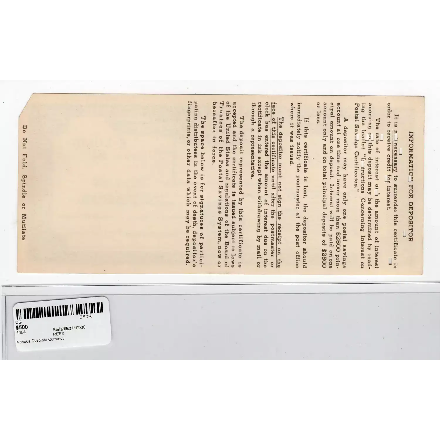 | Category | Obsolete Currency |