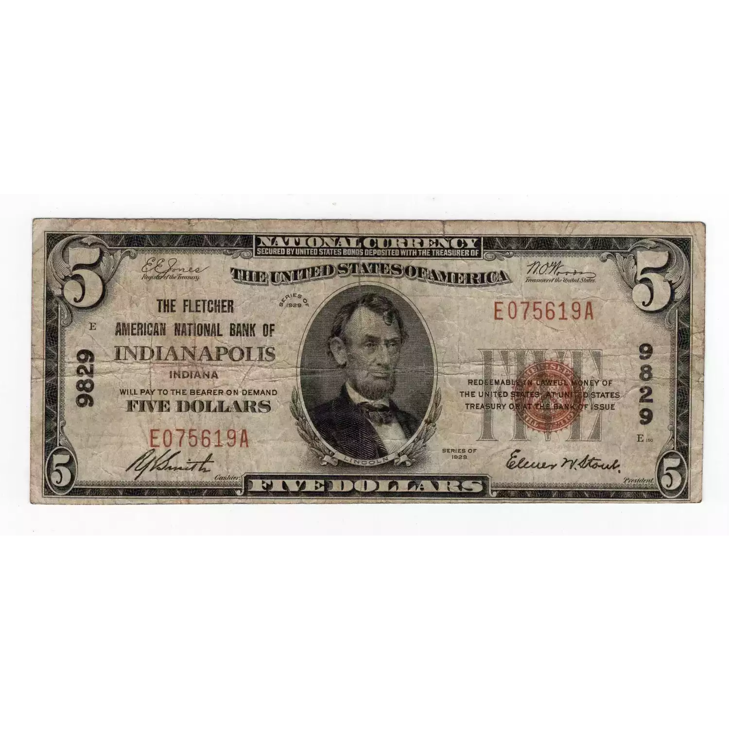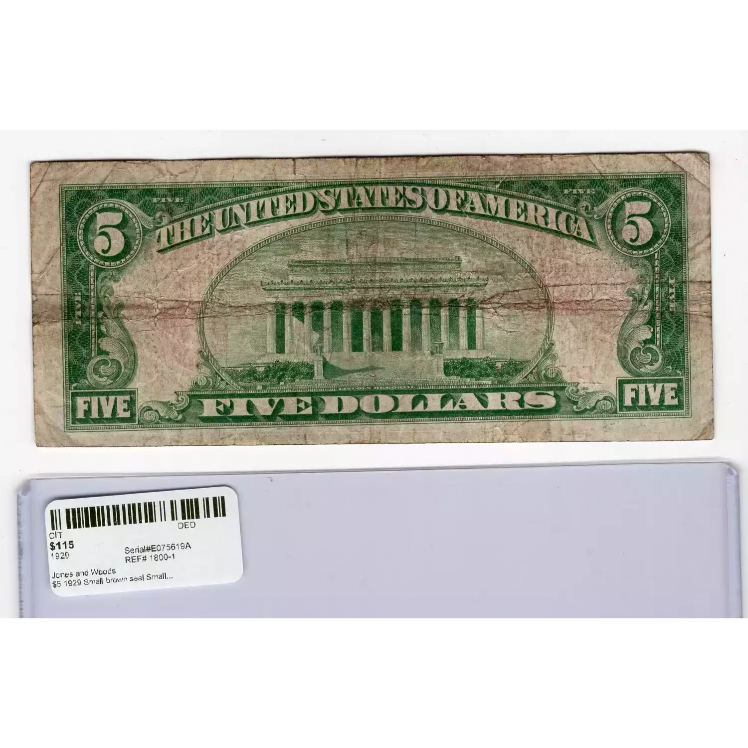$5 1929 Small brown seal Small National Bank Notes 1800-1