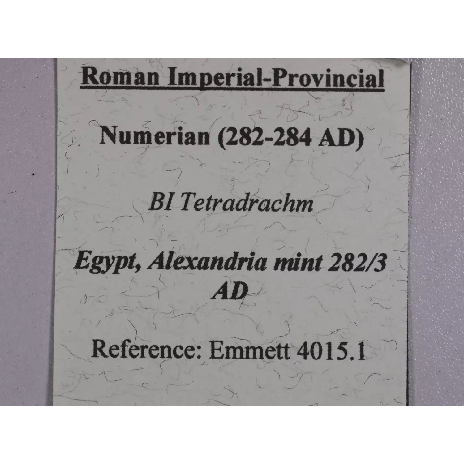 | Year | Numerian as Caesar AE Tetradrachm Alexandria |