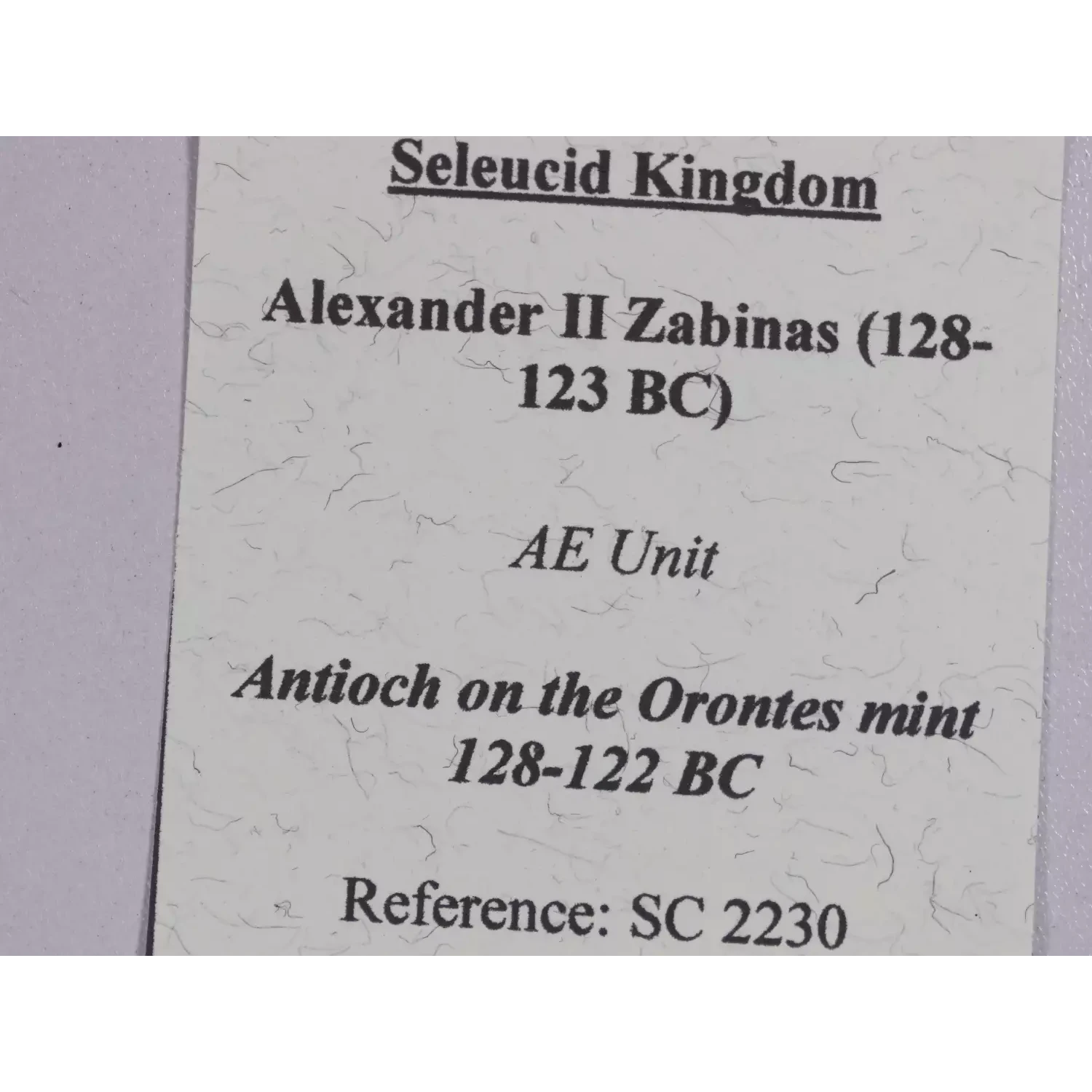| Year | Seleucid Alexander II Zabinas AE15 Antioch mint |