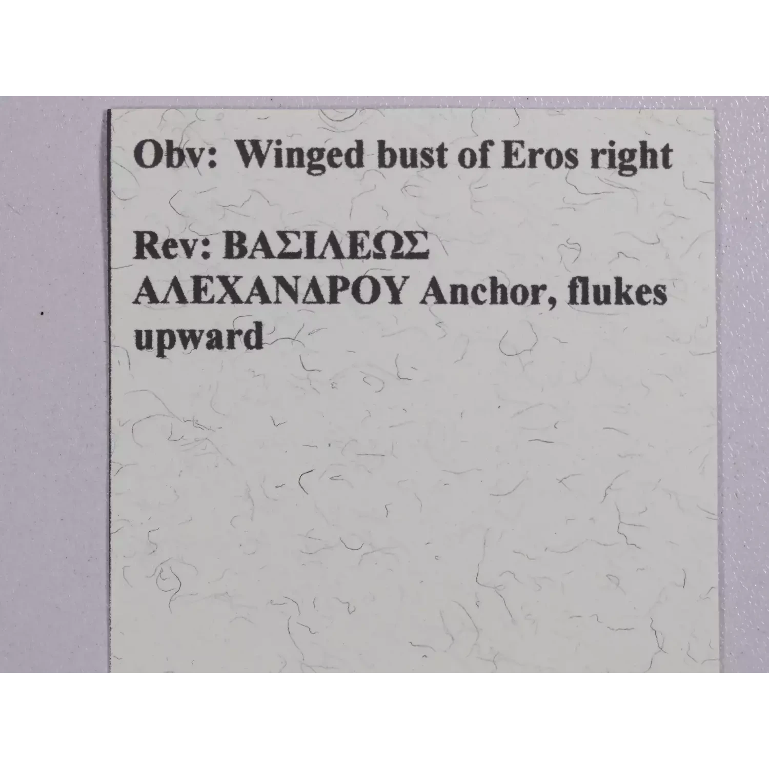 | Variety | 128-122 BC Eros/Anchor |
