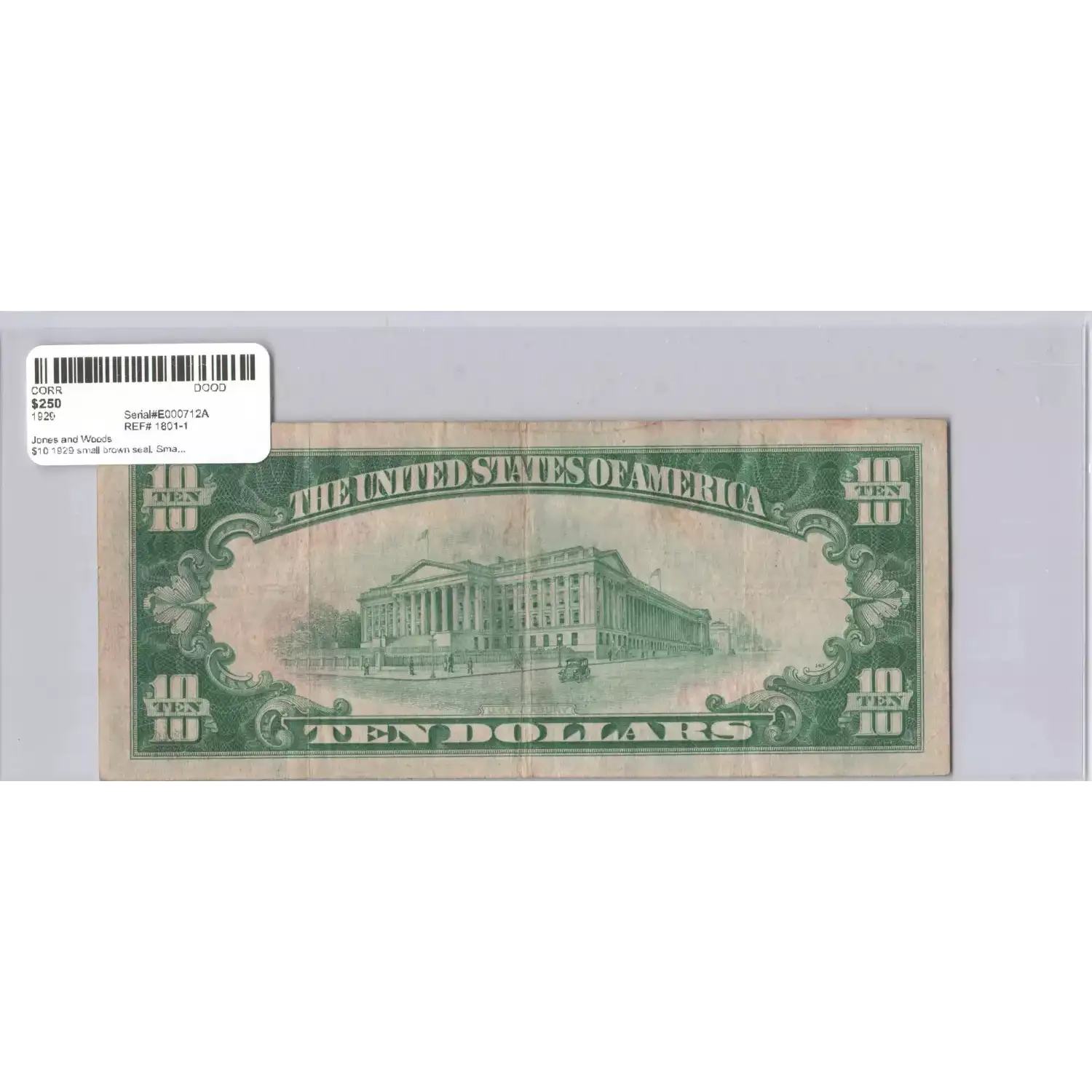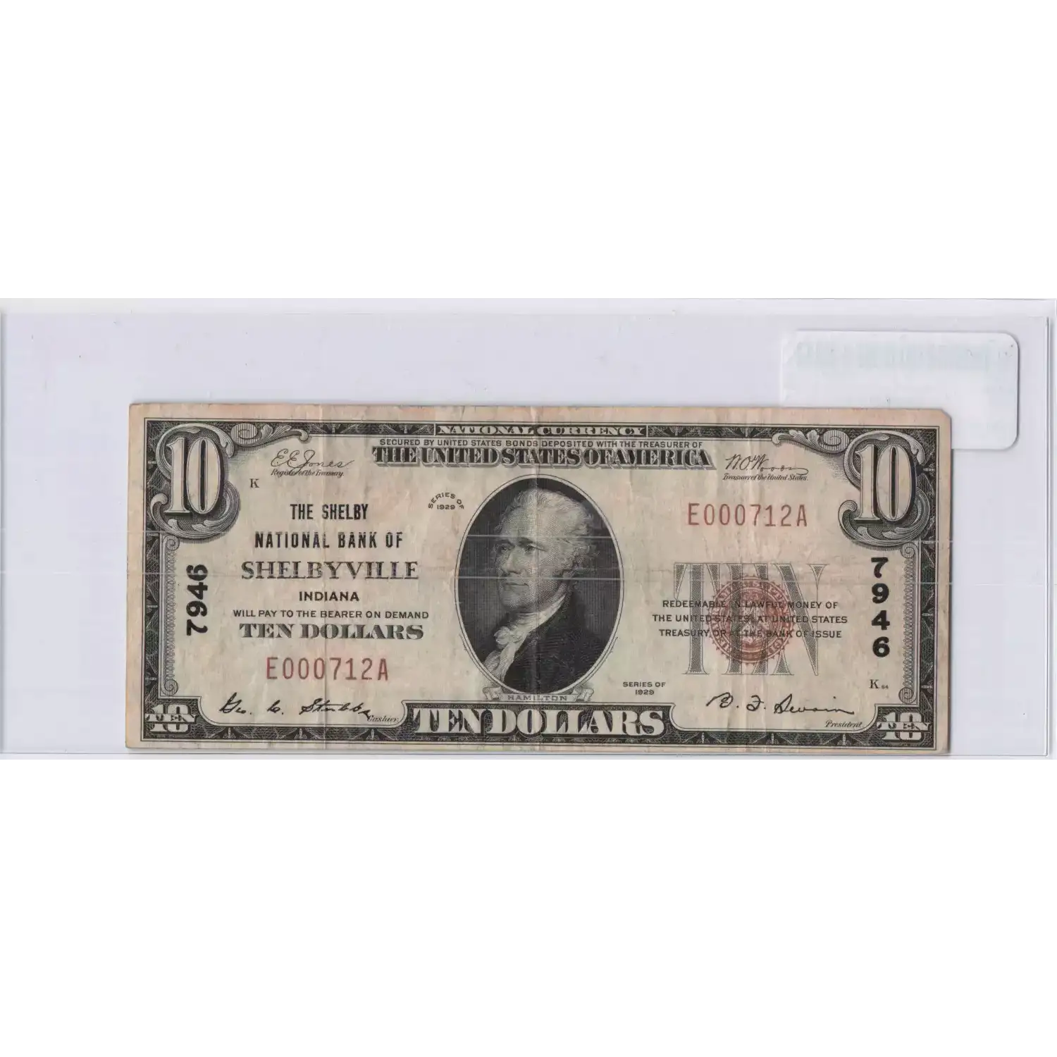 $10 1929 small brown seal. Small National Bank Notes 1801-1