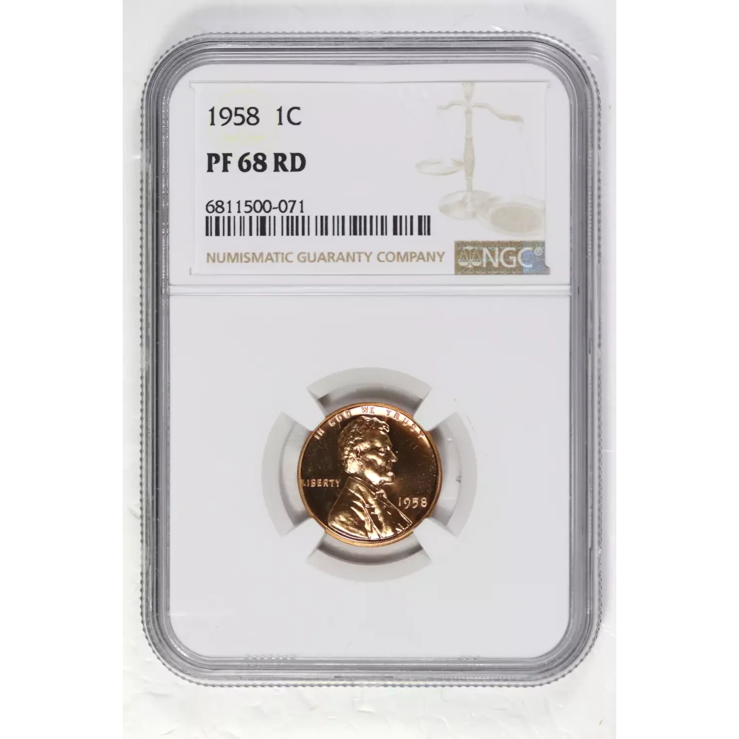 1958 Small Cents Lincoln, Wheat Ears Reverse NGC PF-68 RD