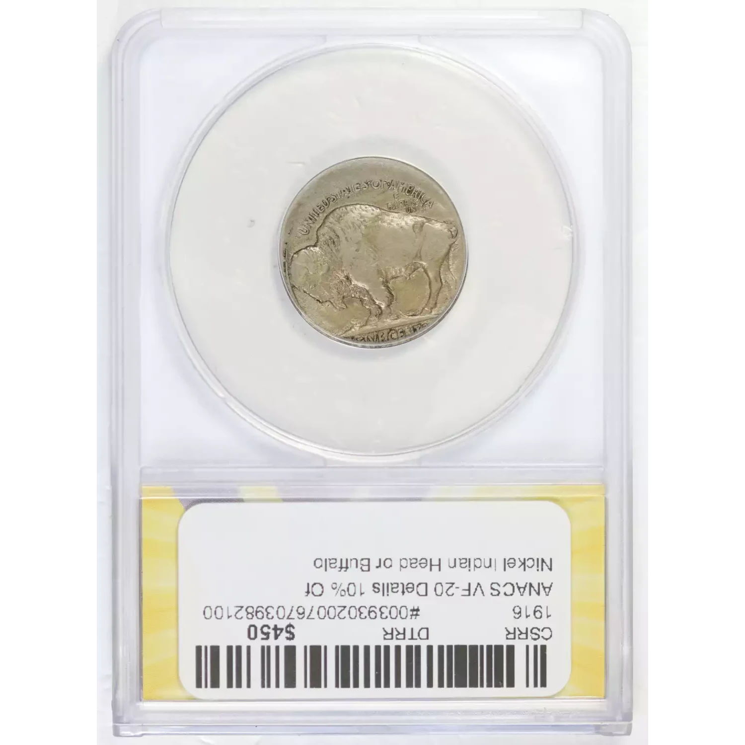 1916 Nickel Indian Head or Buffalo ANACS VF-20 Details 10% Off Center