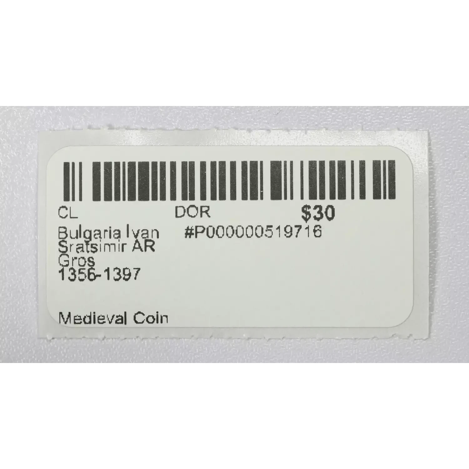 | Year | Bulgaria Ivan Sratsimir AR Gros 1356-1397 |