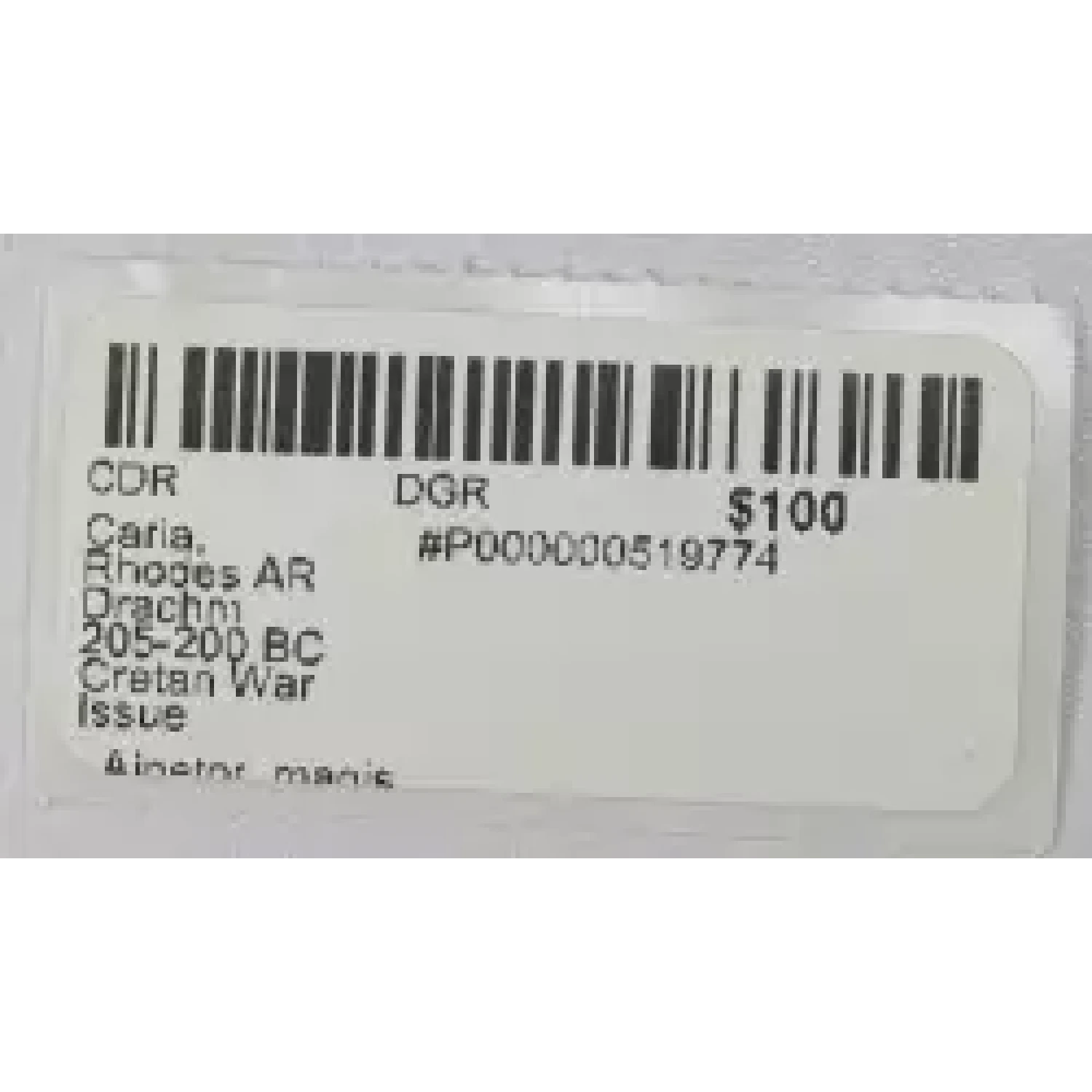 | Year | Caria, Rhodes AR Drachm 205-200 BC Cretan War Issue |